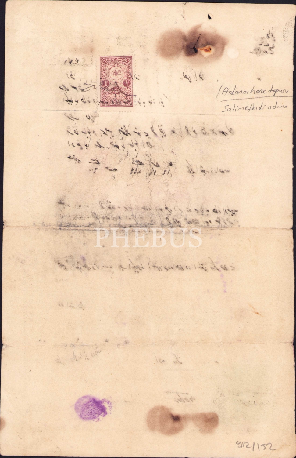 Osmanlıca tapu, Adana, 1324 tarihli, 17x27 cm