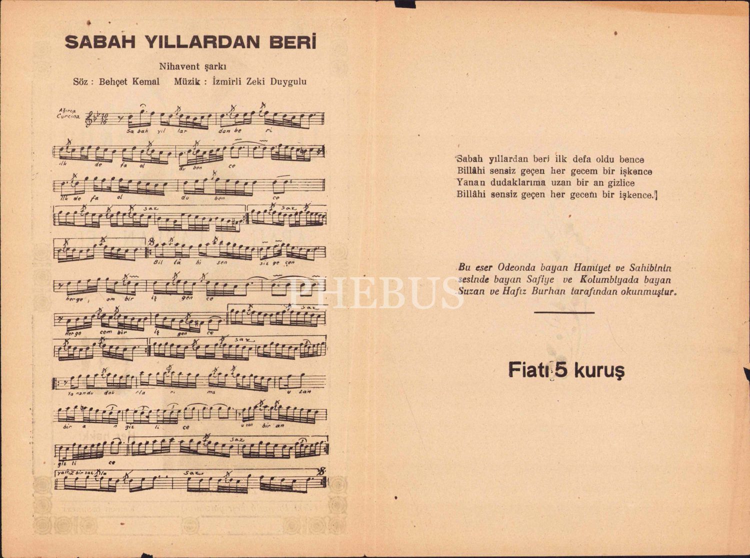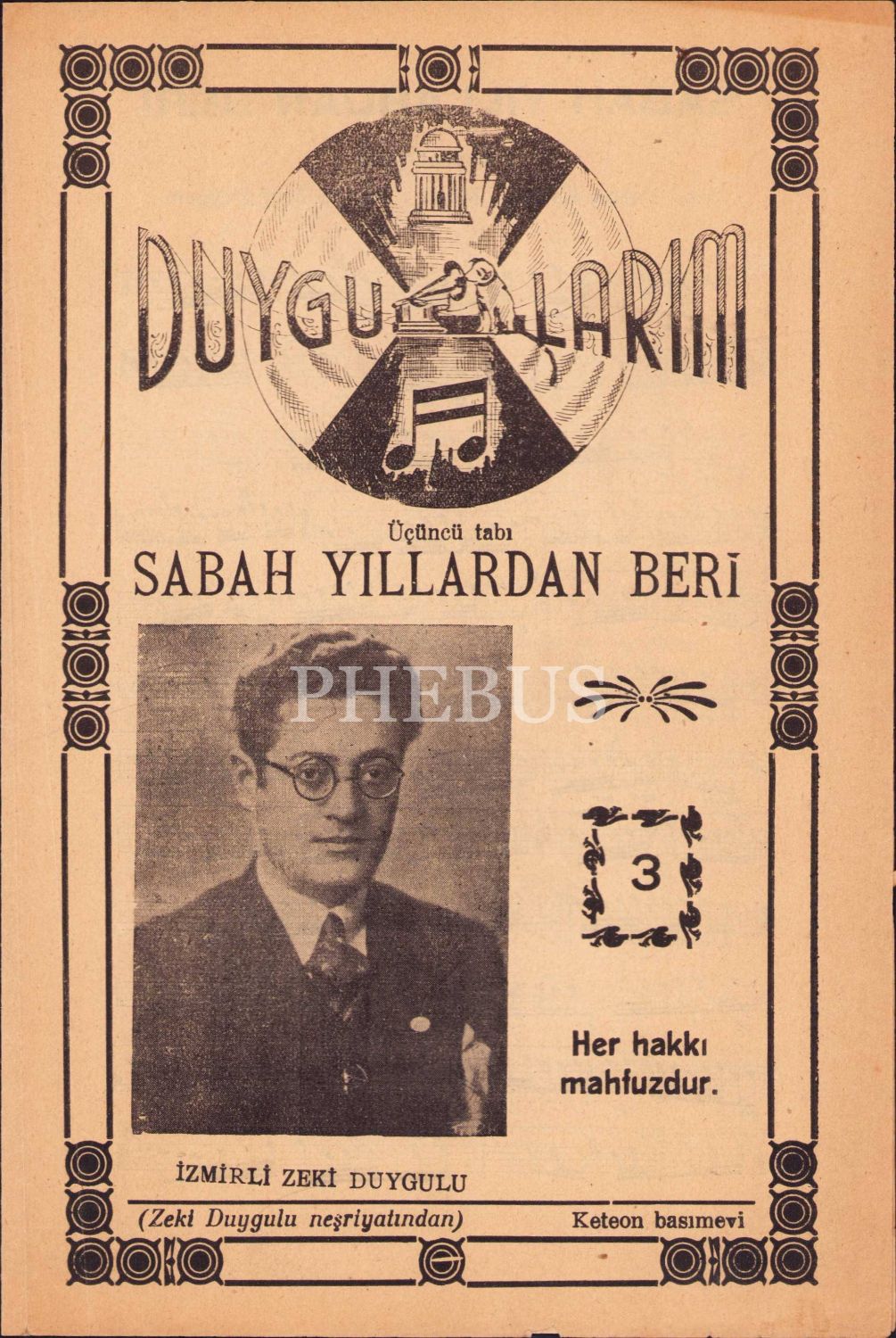 Sabah Yıllardan Beri, İzmir Zeki Duygulu, üçüncü baskı, nota, 16x24 cm