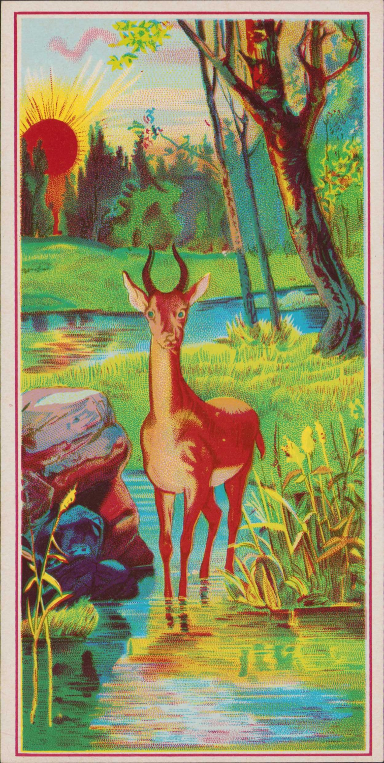 Osmanlı dönemi fes etiketi, geyik-doğa temalı, 10,5x21cm