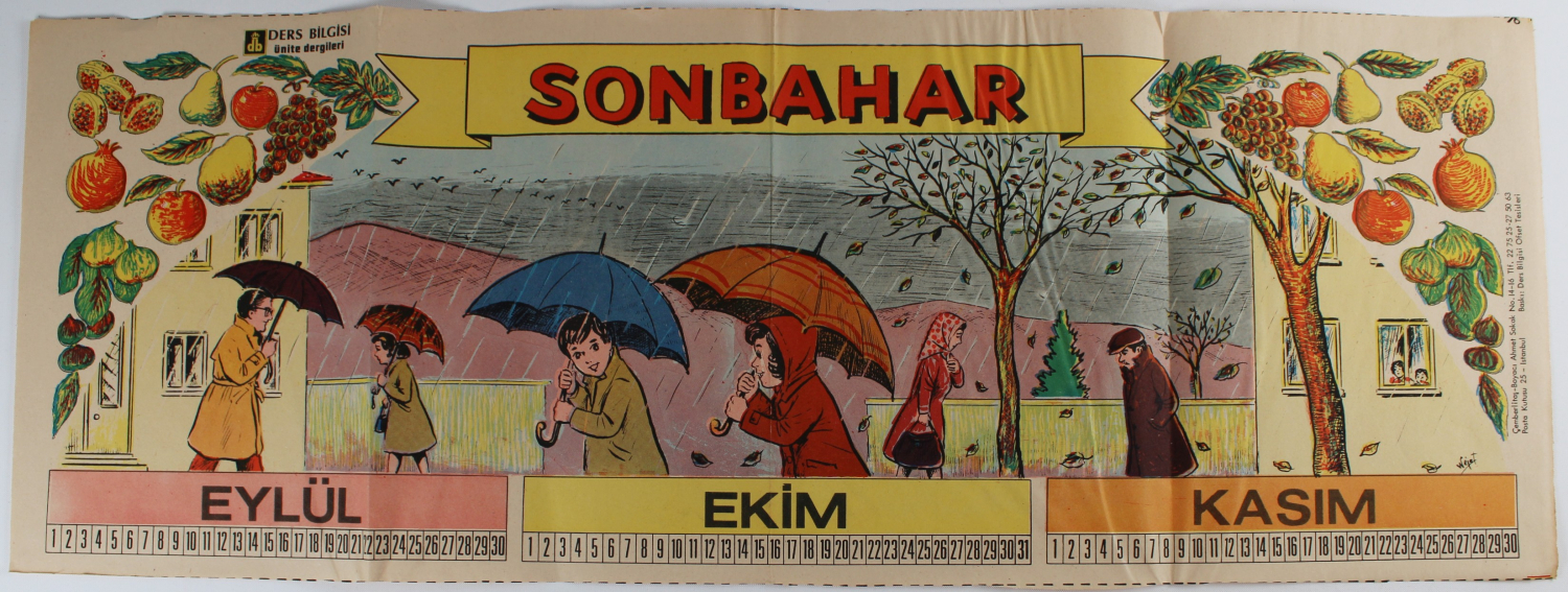Ders Bilgileri Ünite Dergileri baskısı, sonbahar temalı, öğretici afiş, 1981 tarihli, 25x69cm