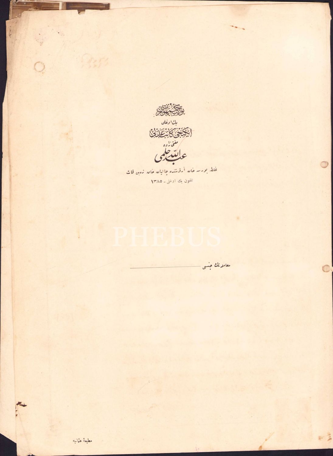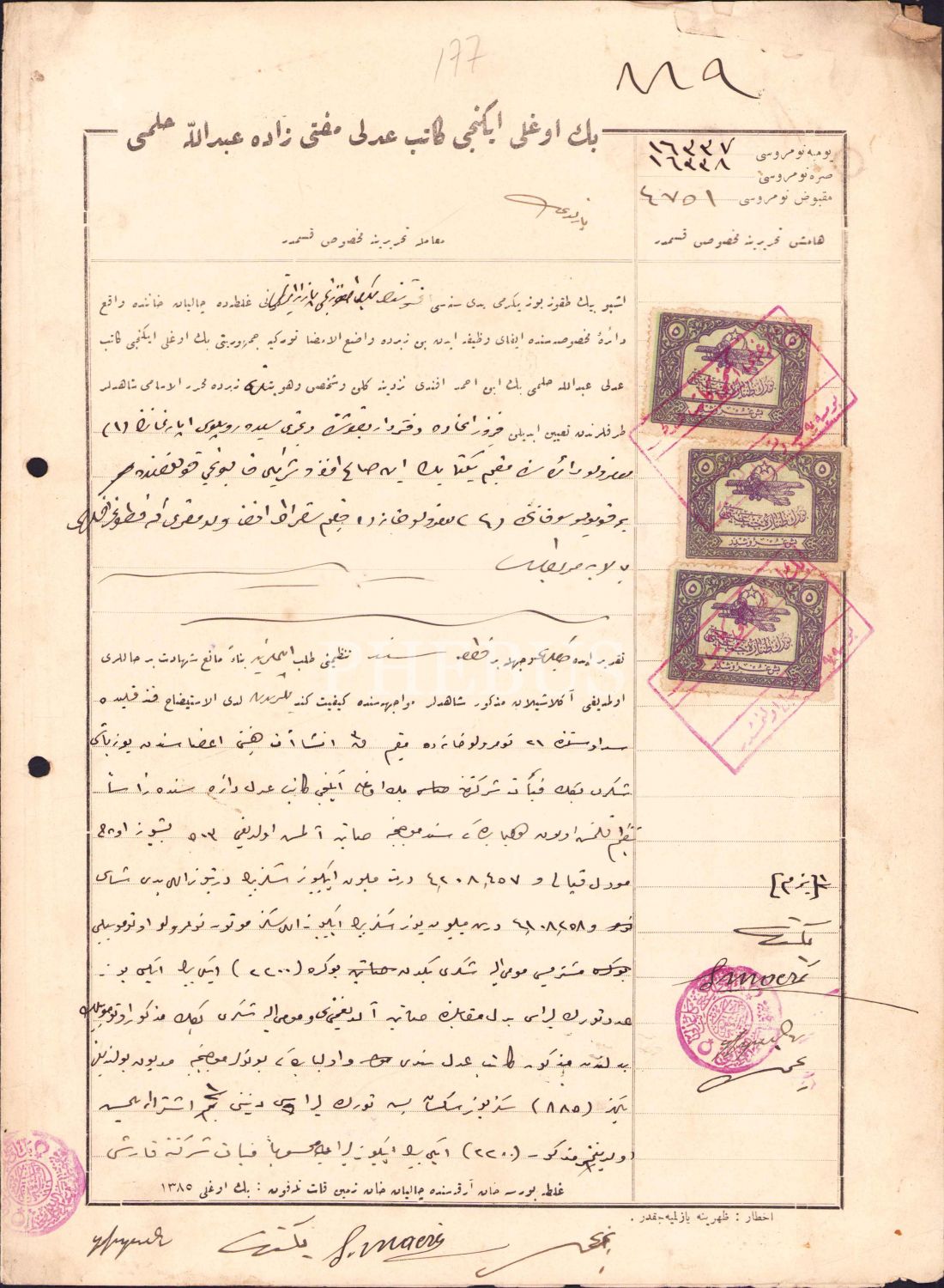 Osmanlıca, TC Beyoğlu İkinci Katip Adli Müfti Zade Abdullah Hilmi, muhtelif bir şirkete ait mahkeme kaydı, 25x34 cm