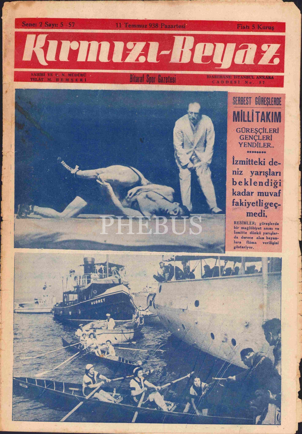 Kırmızı - Beyaz spor gazetesi, 11 Temmuz 1938, sırtı haliyle, 6 sayfa, 26x38 cm