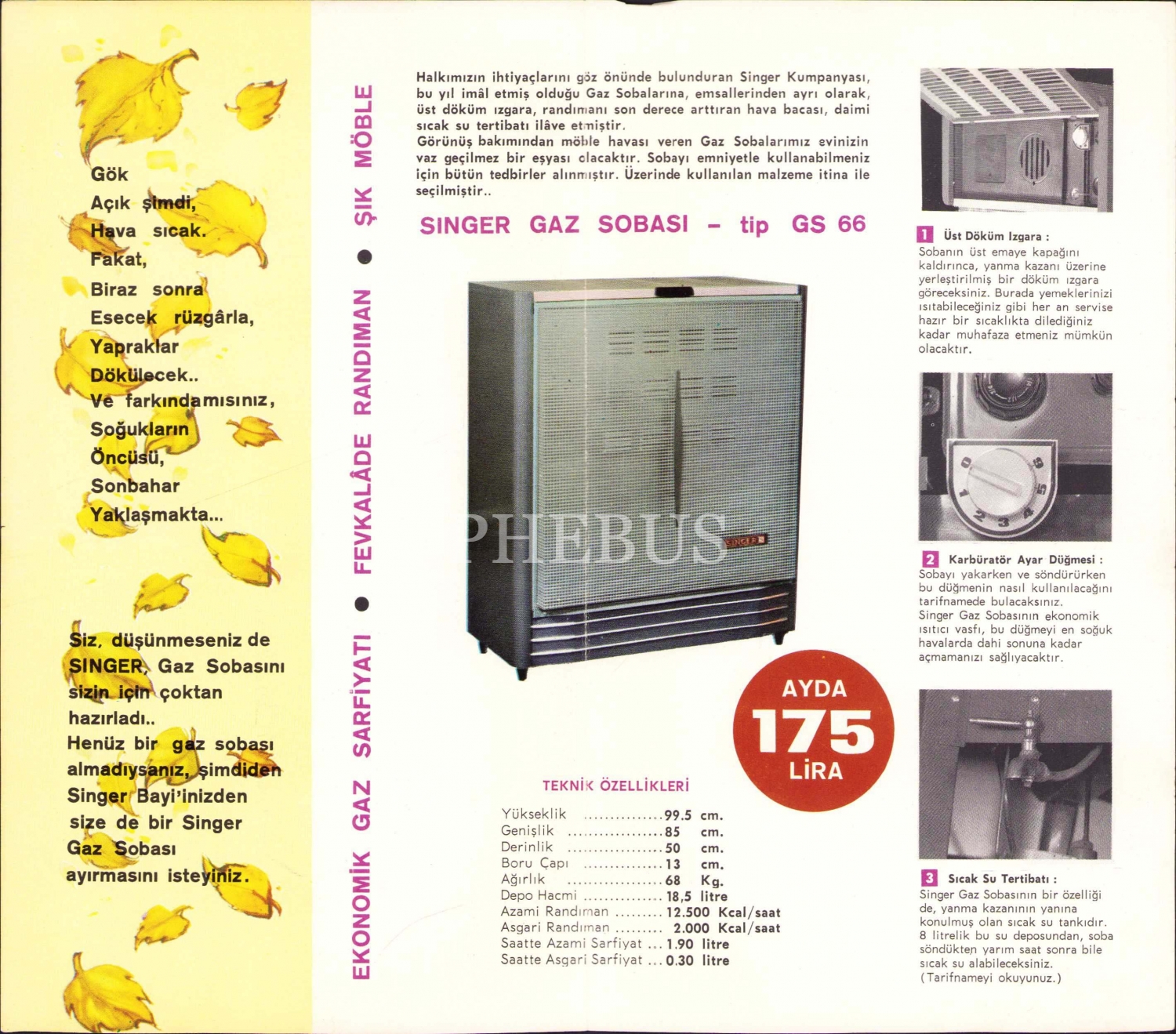 Singer gaz sobası el ilanı, 12x20 cm