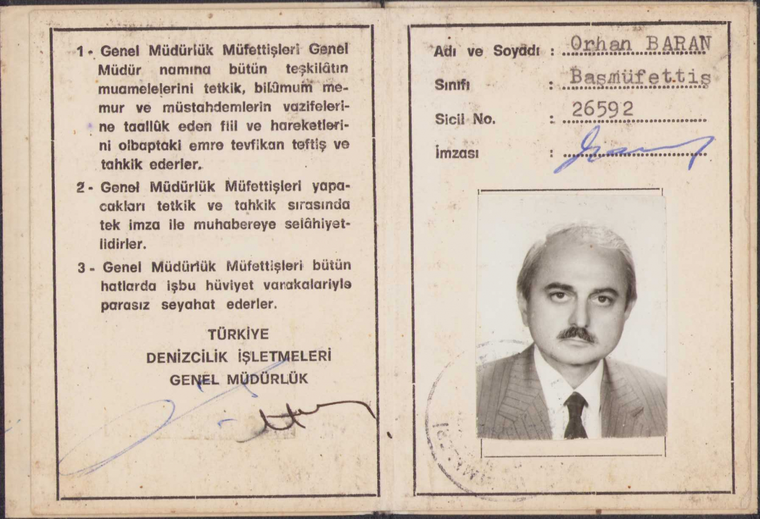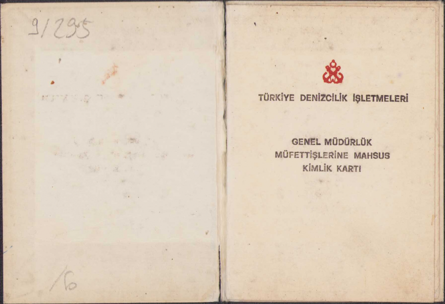 Türkiye Denizcilik İşletmeleri Genel Müdürlük müfettişlerine mahsus kimlik kartı, fotoğraflı, 2 yaprak, 8x11cm