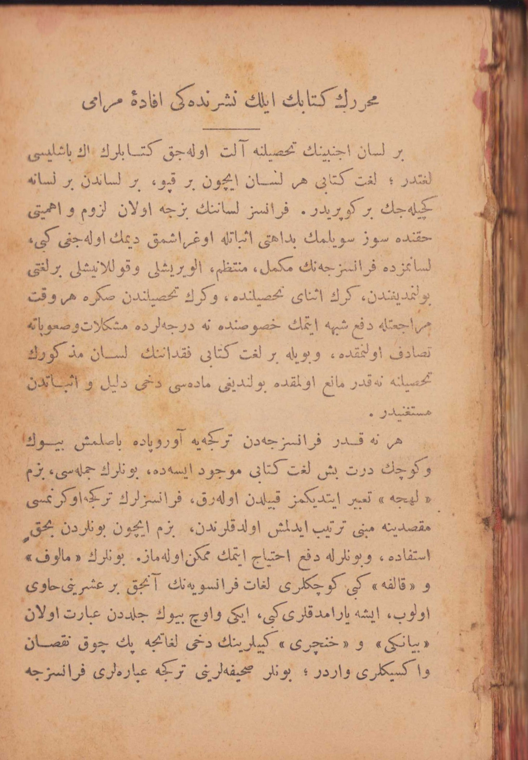 Kamus-ı Fransevi - Fransızcadan Türkçeye lügat kitabı, Sami Bey, ikinci baskı, Mihran matbaası, İstanbul, 1315, y ve z harfleri eksik, sayfa sayısı eksik, 1913 sayfa, deri cilt, 12x18cm