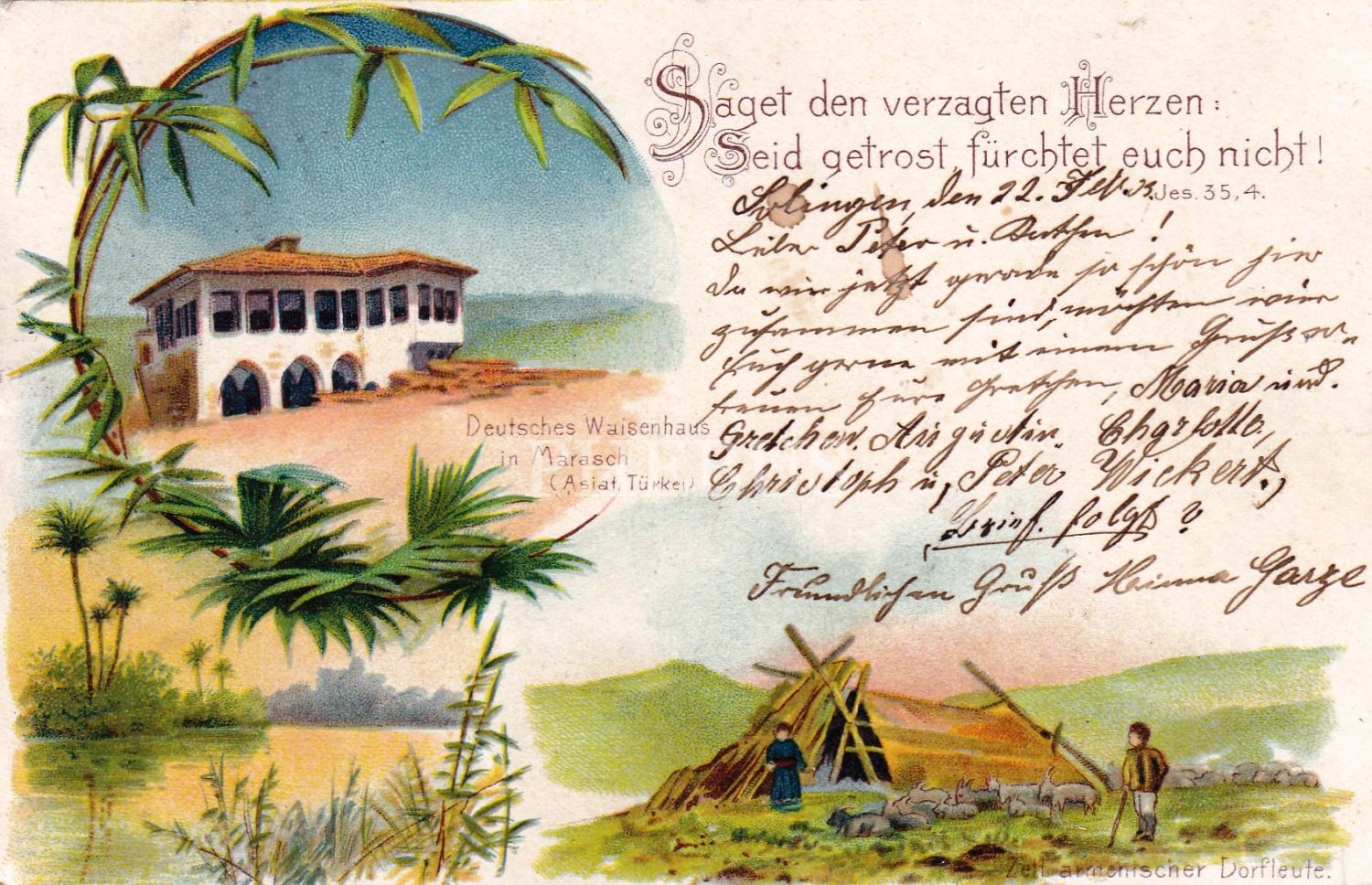 Maraş Alman Yetimhanesi ve Ermeni Köylüler Taşbaskı Kartpostal