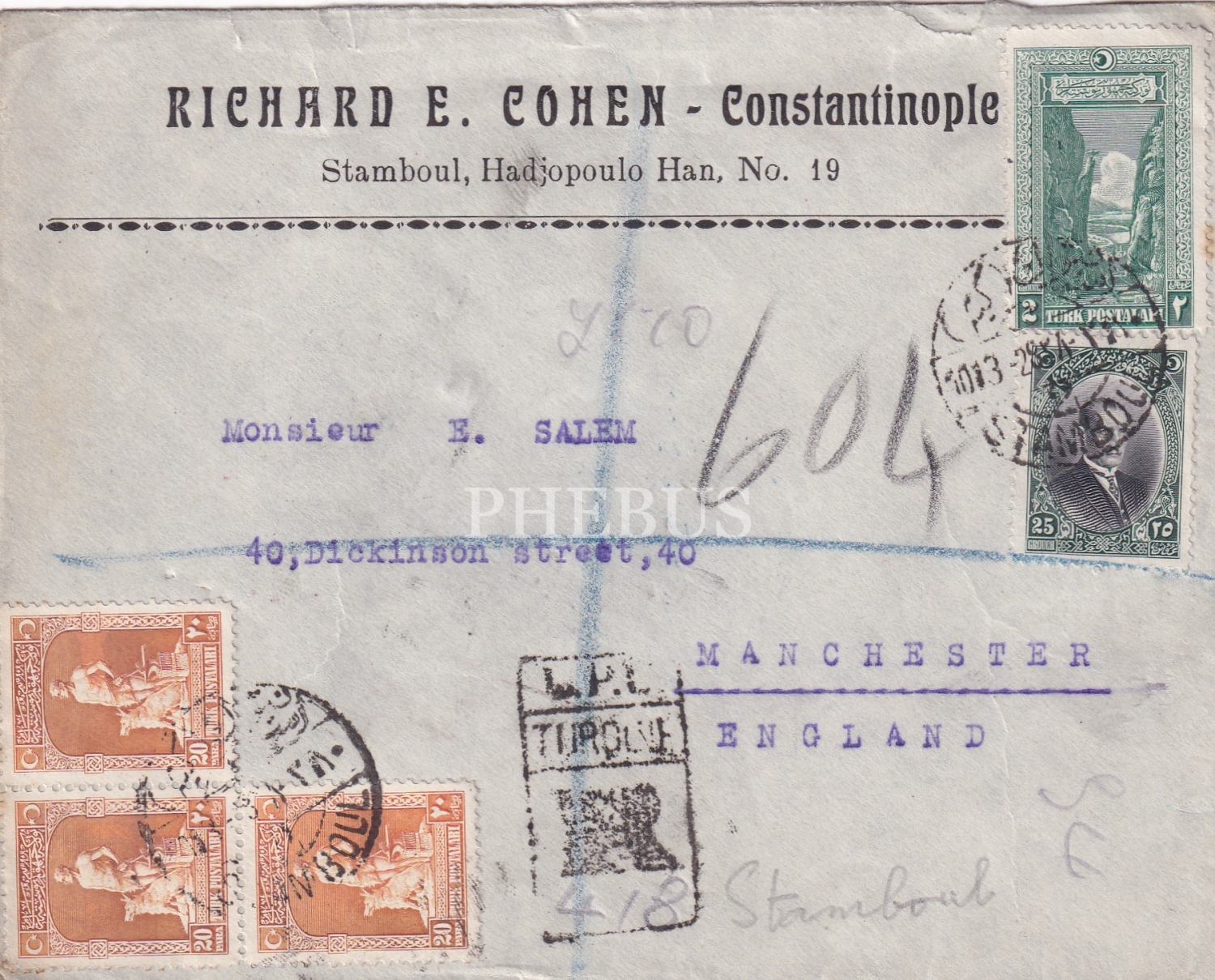 Constantinople Yahudi Tüccar Richard E. Cohen Antetli Zarf