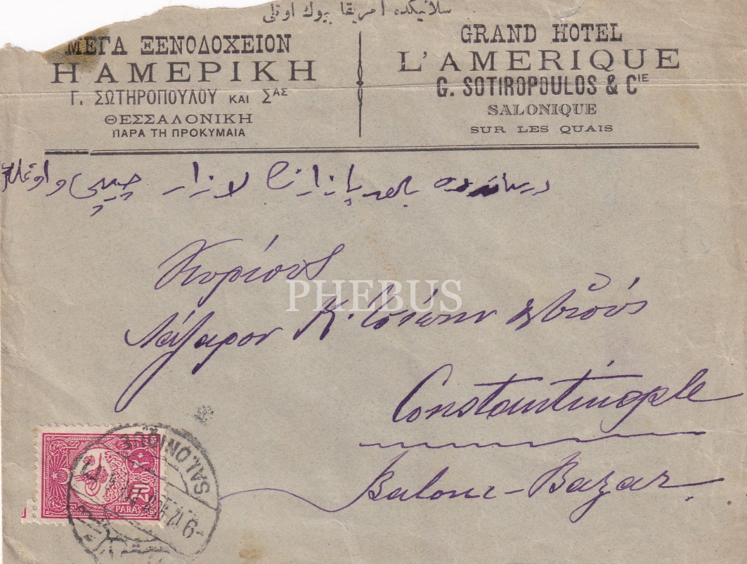 Osmanlıca Rumca Fransızca Selanik'te Grand Hotel Amerique Antetli Zarf