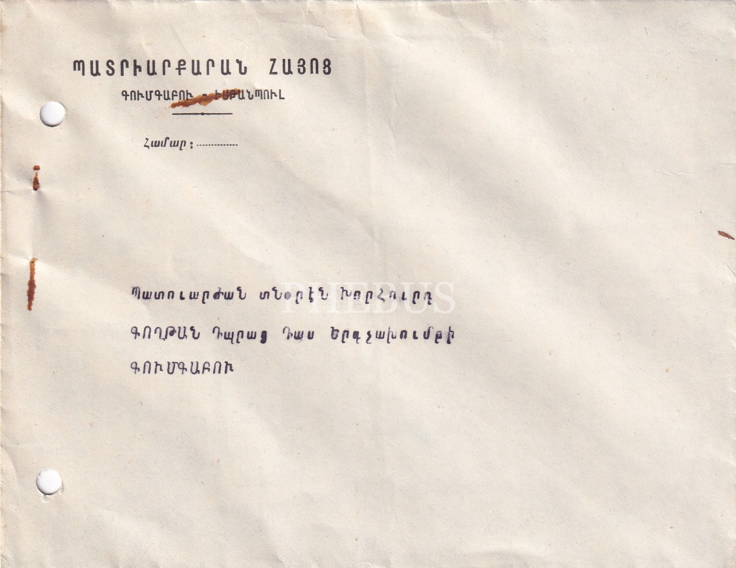 Ermenice İstanbul Ermeni Patrikhanesi Antetli Zarf