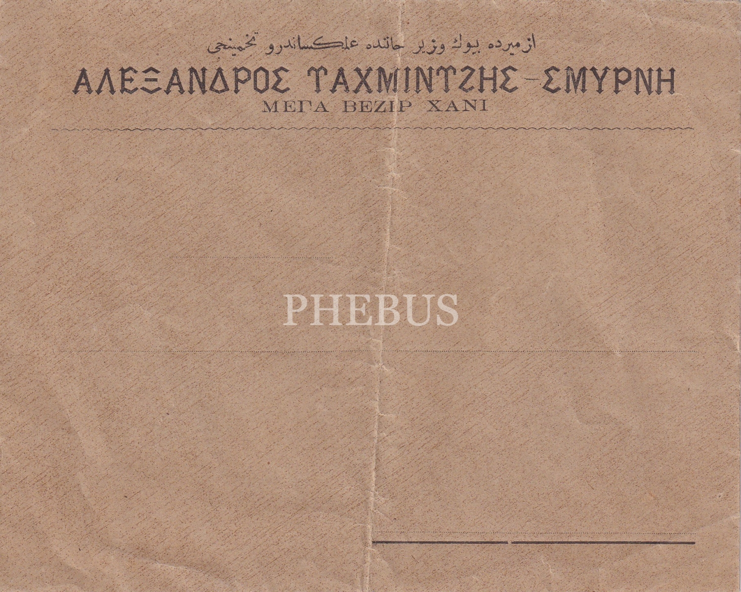 Osmanlıca - Rumca İzmir'de Büyük Vezir Han'ında Aleksandros Tahminci Ticarethanesi Antetli Zarf