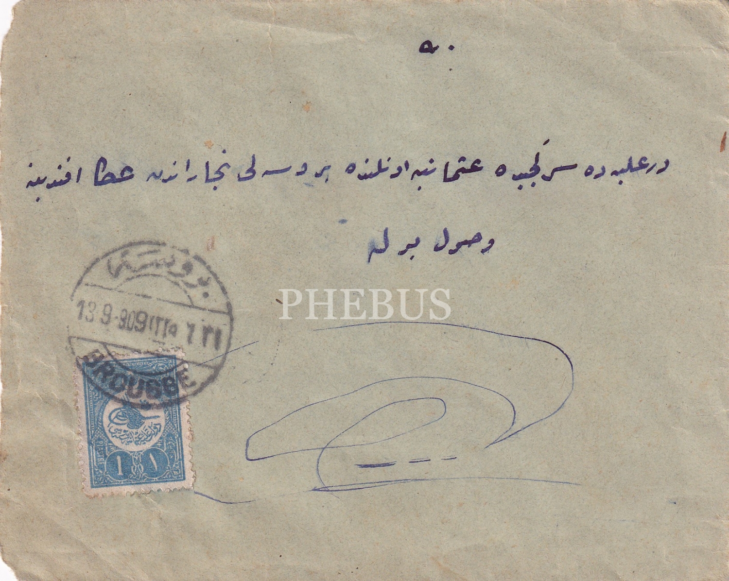 Dersaadet Osmaniye Otelinde Bursalı Tüccar Ata Efendiye Gönderilmiş Bursa Damgasıyla Postadan Geçmiş Zarf