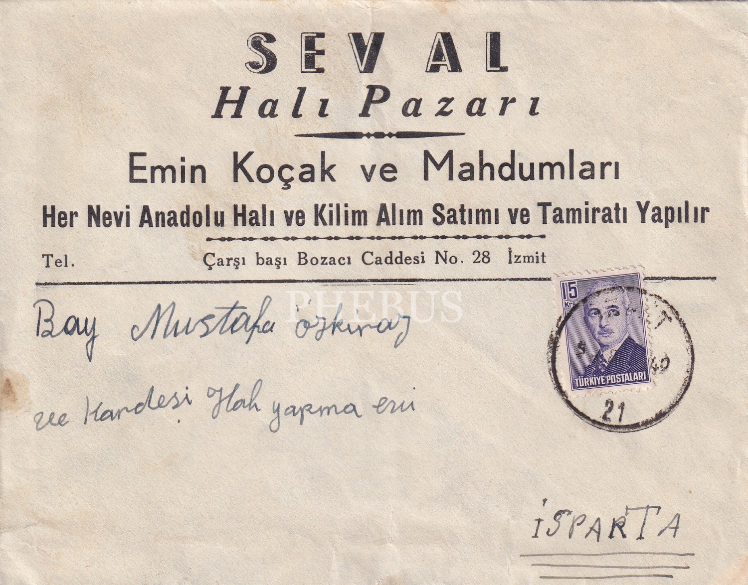 İzmit'te Seval Halı Pazarı Antetli Zarf