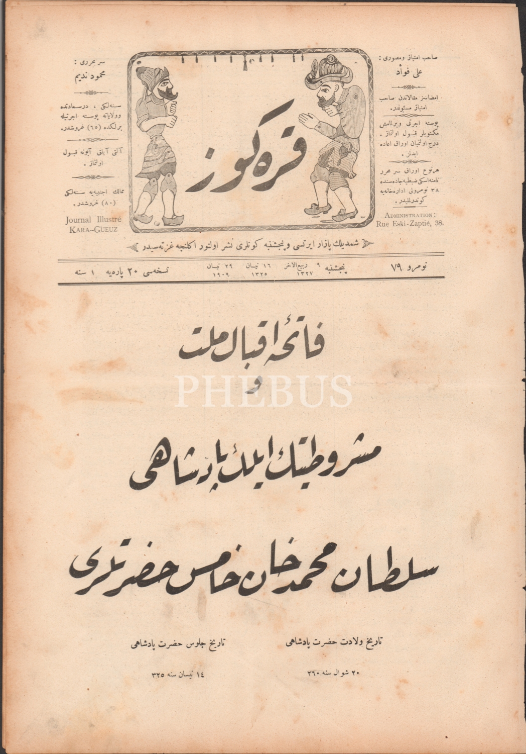 Osmanlıca Karagöz Gazetesi Sultan Mehmed Reşad Han Cülusu Fevkalade Nüshası 1909