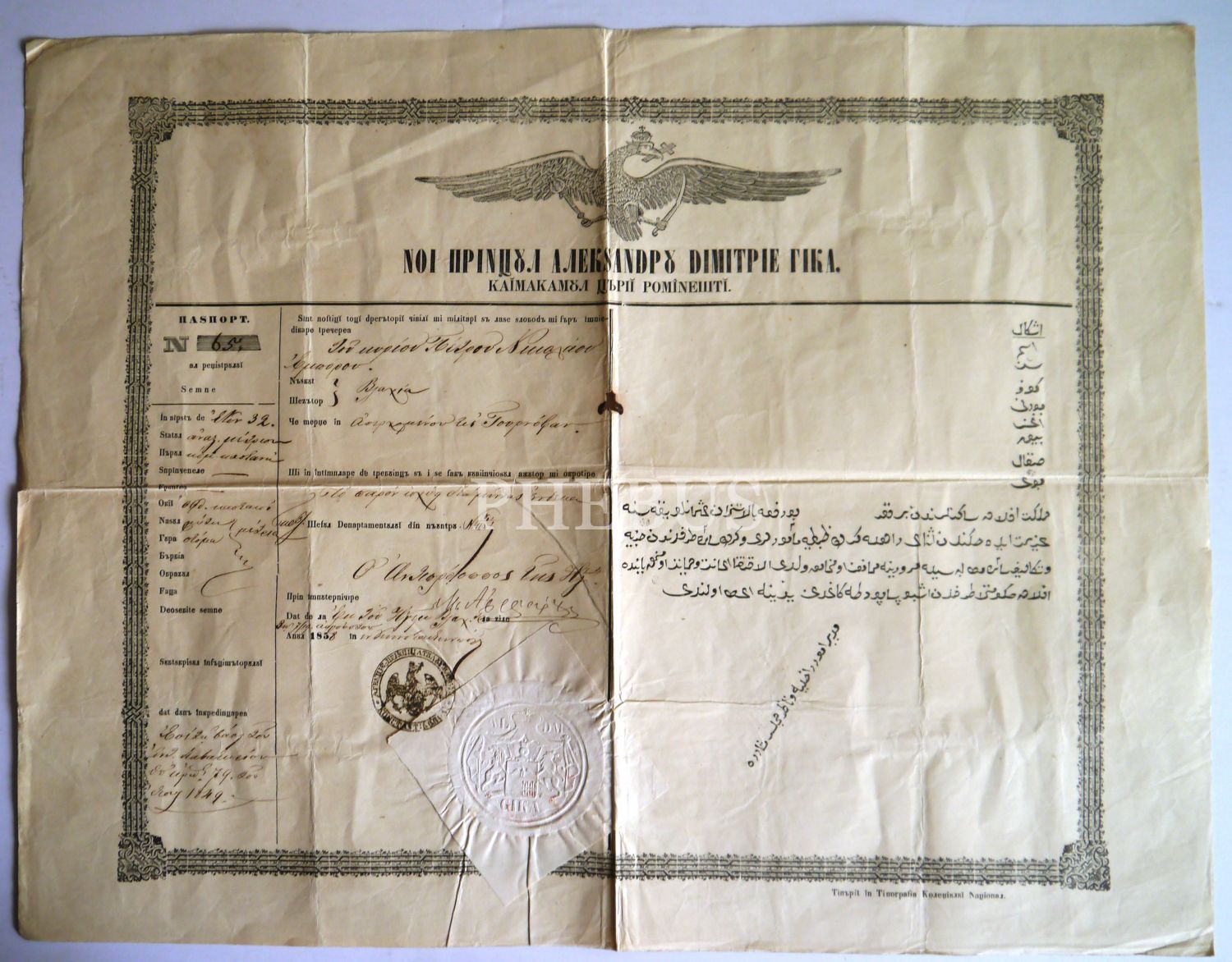 Eski Romence - Osmanlıca Eflak (Romanya) Devleti'nin Osmanlı Devletine Tabi Olduğu Dönemde Hazırlanan Erken Dönem Pasaport 1858 40 x 52 Cm