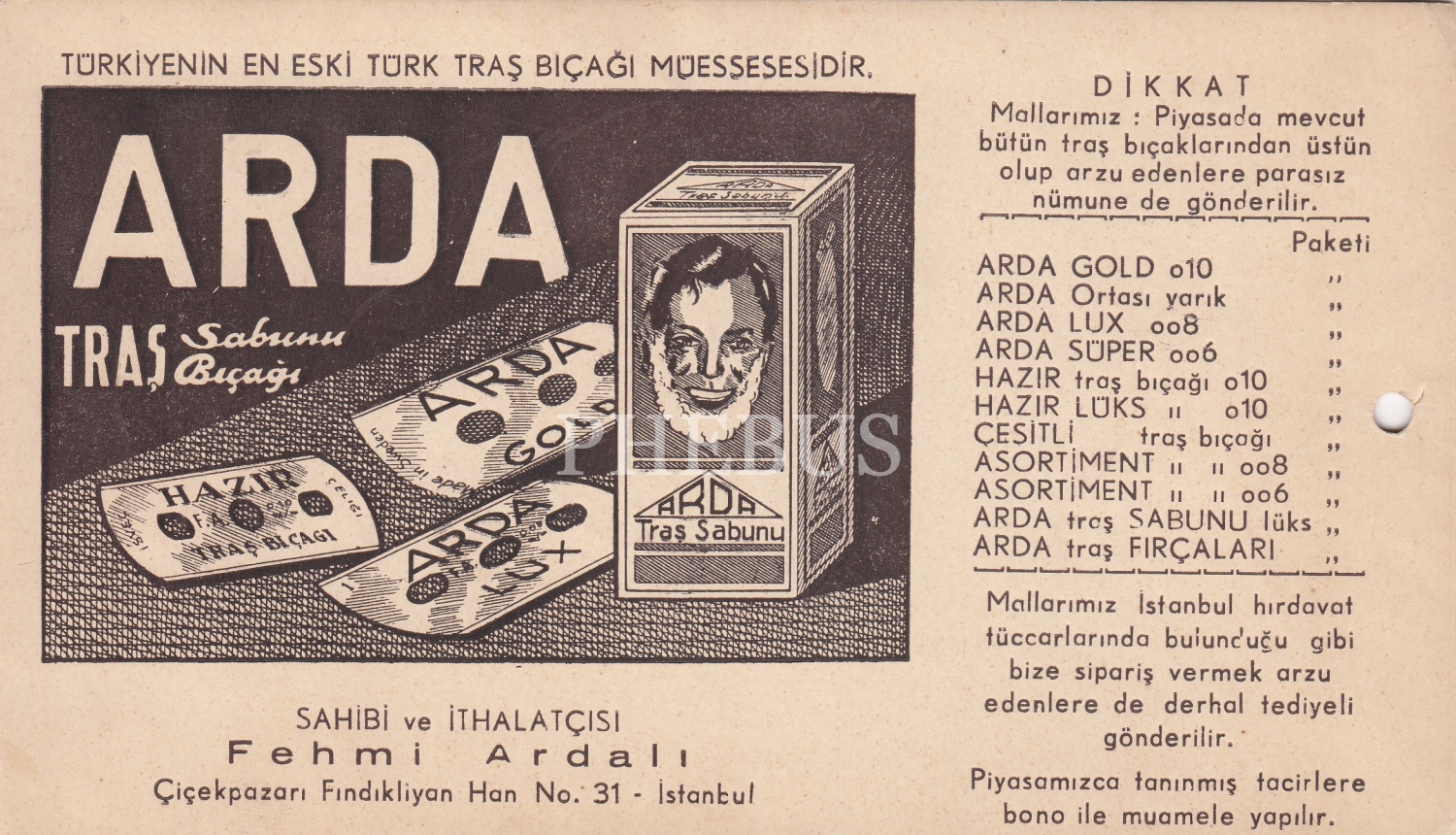 Arda Traş Sabunu Reklamlı Mürekkep Kurutma Kartonu