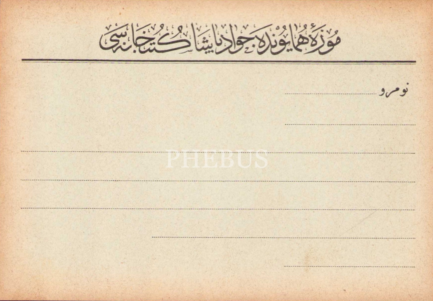 Osmanlıca Müze-i Hümayun Cevad Paşa Kütüphanesi antetli kart, 15x10 cm