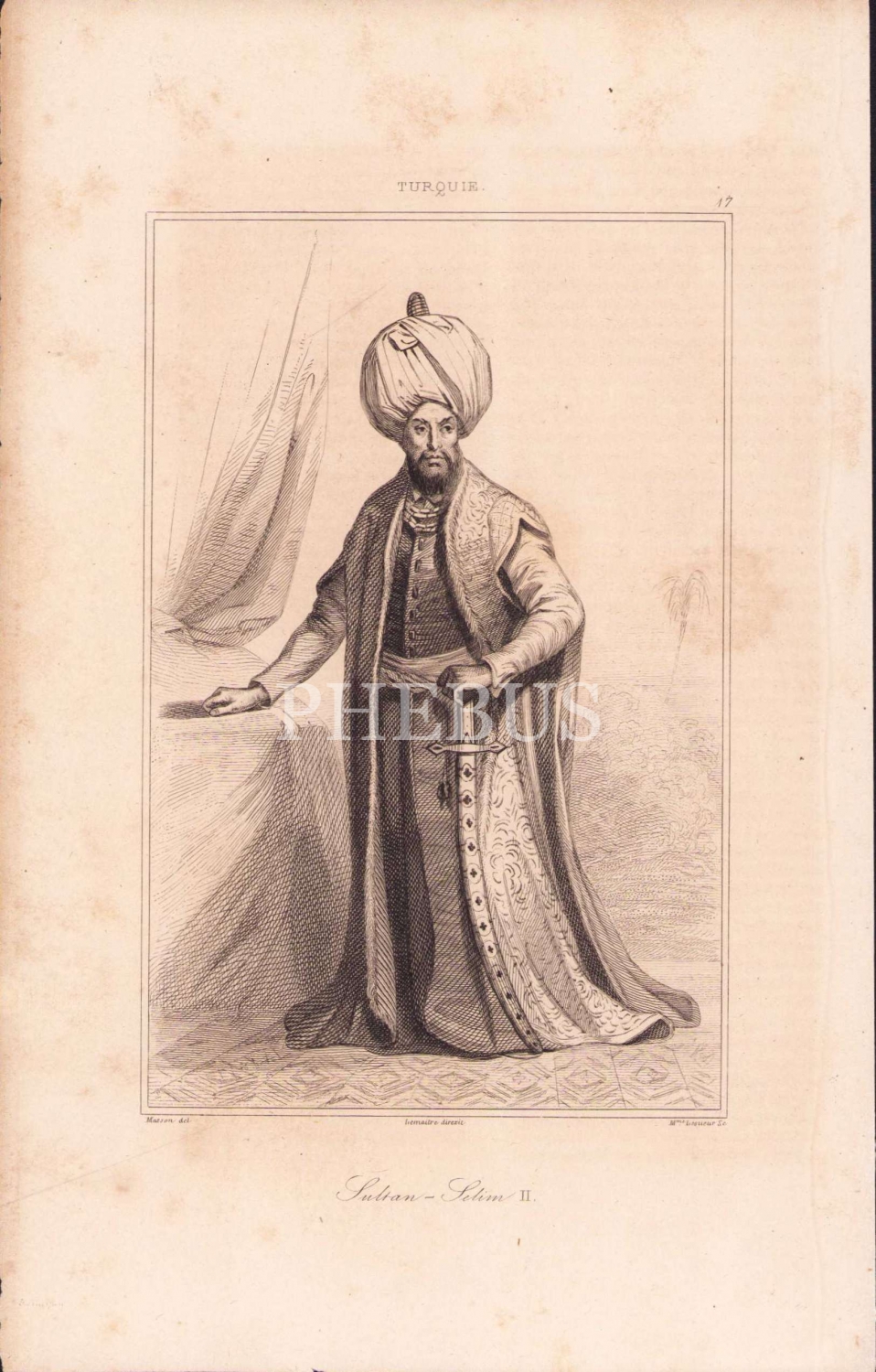 Osmanlı gravür, Sultan II. Selim, 12x20 cm