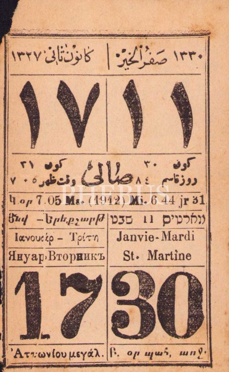 Osmanlıca, İbranice, Ermenice, Rumca, Rusça, Fransızca 6 dilde takvim yaprağı, 5x8 cm