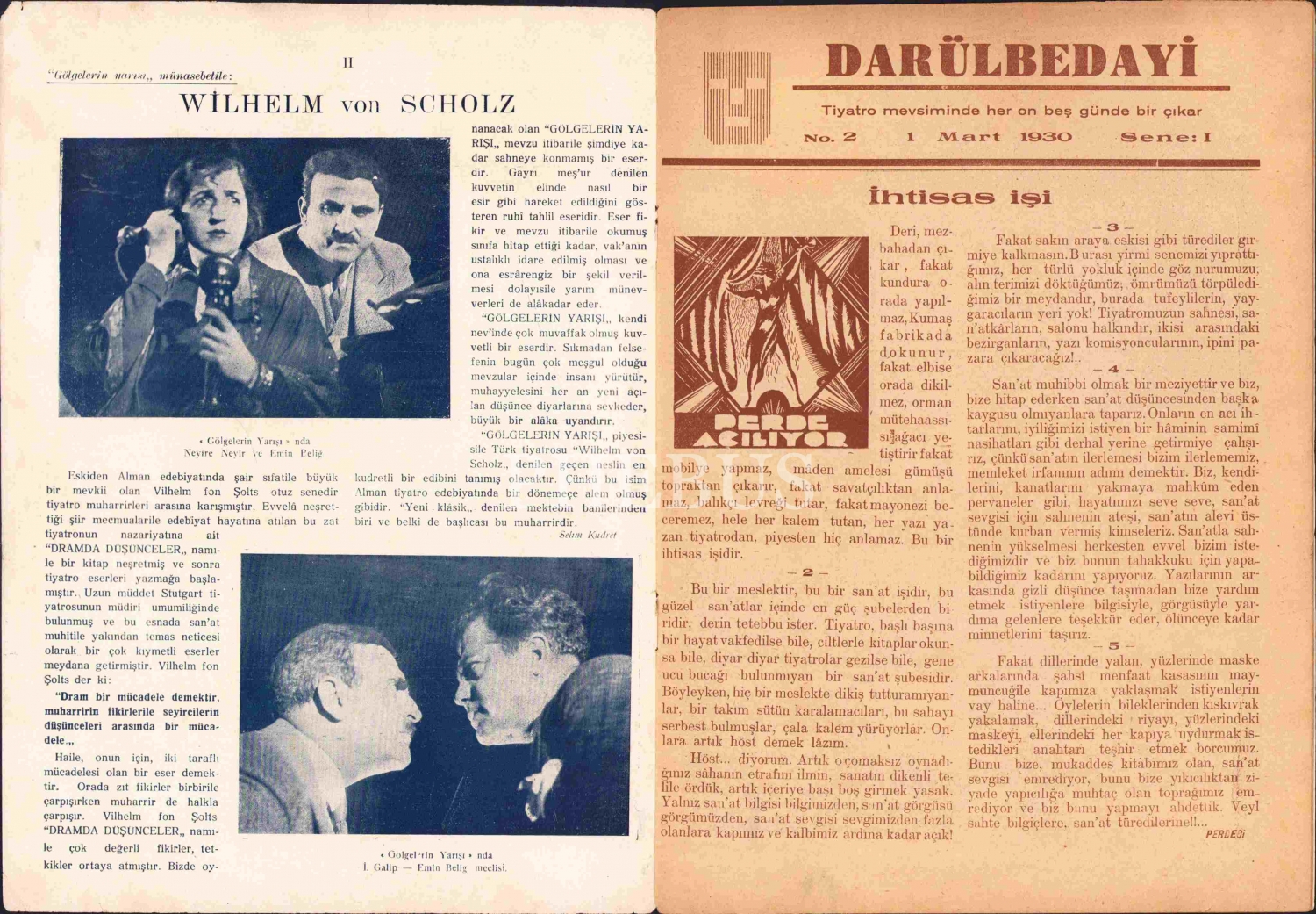 Darülbedayi, Cumhuriyet Matbaası, 1930, sırt bir kenar yıpranmış, 16 sayfa, 19x27 cm