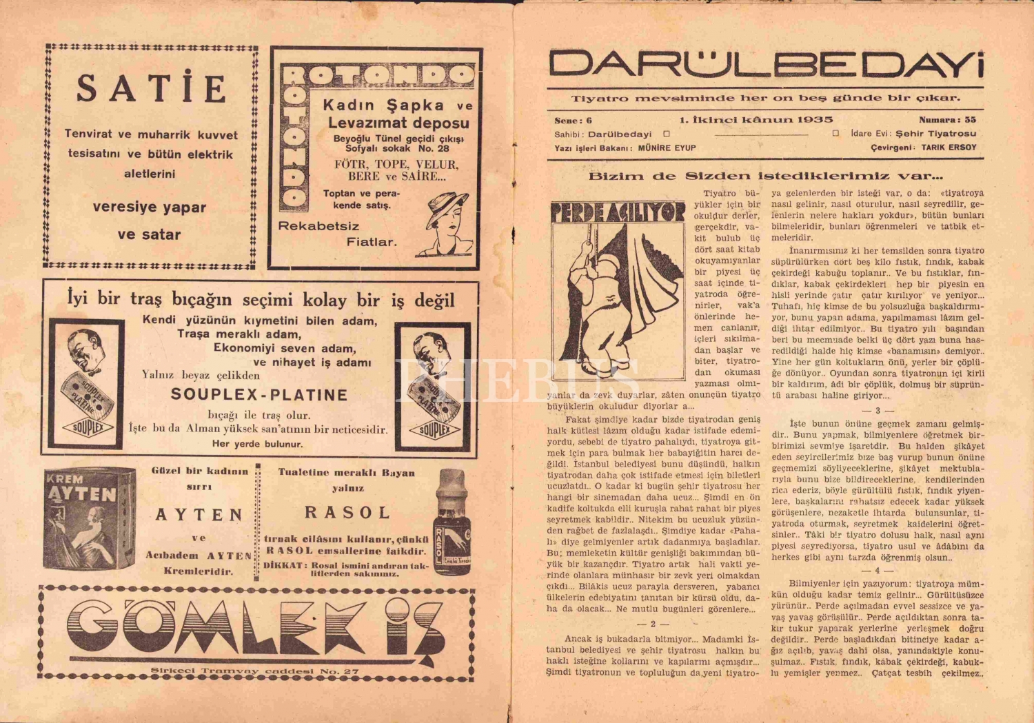Darülbedayi, Şehir Tiyatrosu, 1935, 15 sayfa, 19x25 cm