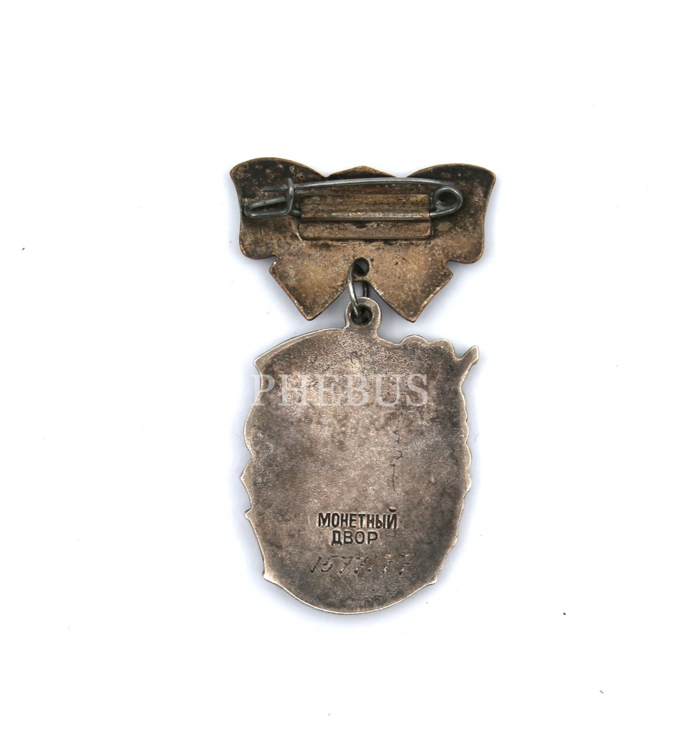 Mineli gümüş 3. derece Sovyet Çocuklu Anne rozeti, 6x2 cm