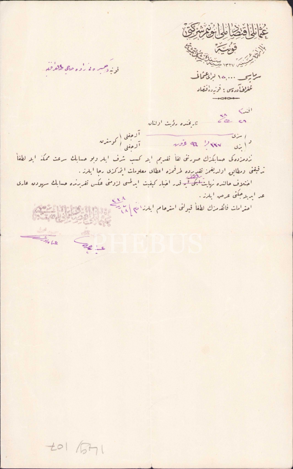 Osmanlı İktisadi Milli Anonim Şirketi - Konya antetli 1338 tarihli Osmanlıca doküman, 17x28 cm