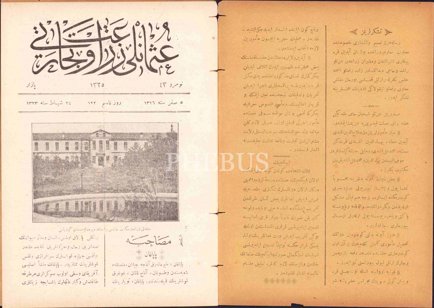 Osmanlı Ziraat ve Ticareti risalesi, 24 Şubat 1323, resimli, 16 sayfa, 17x24 cm