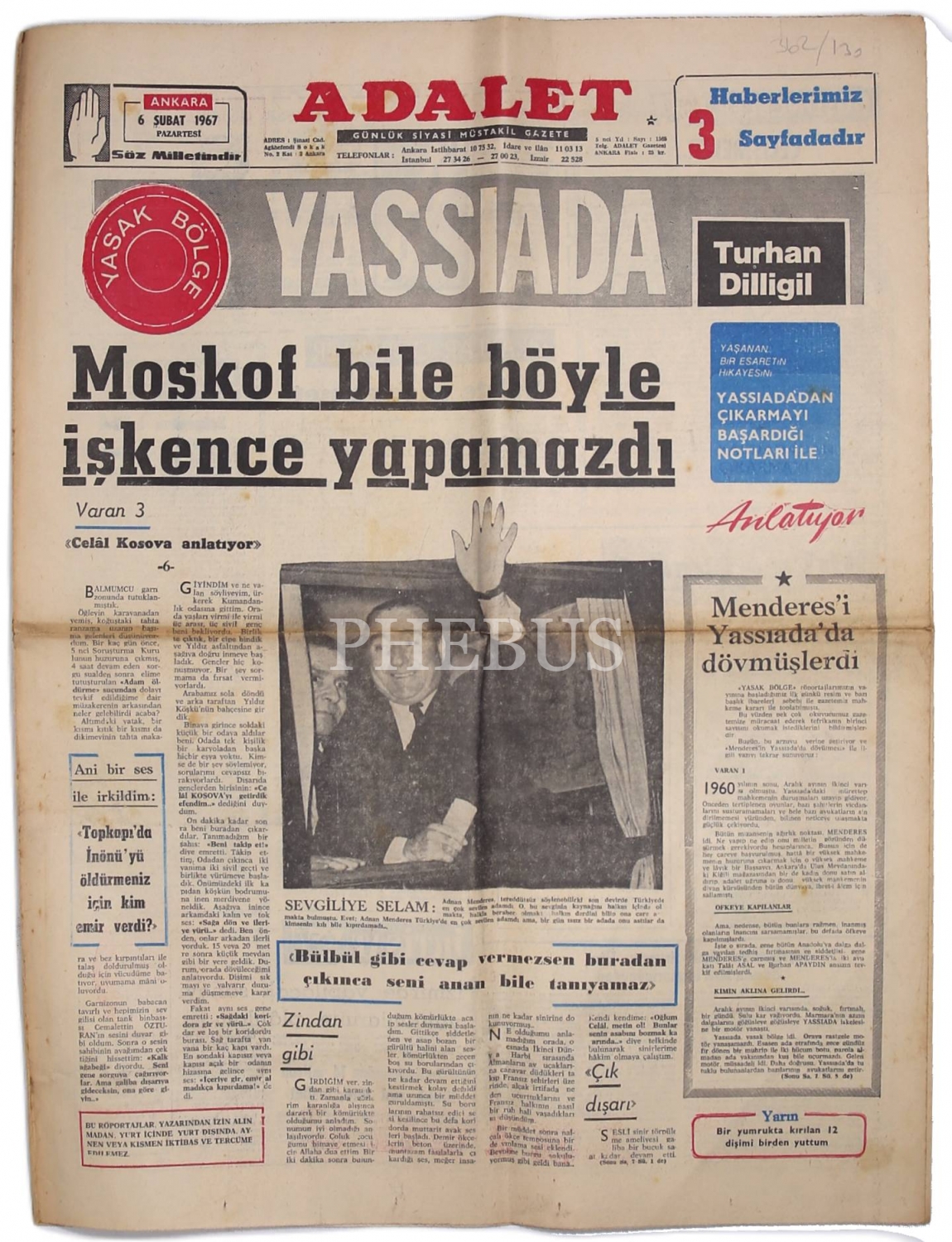 Adalet gazetesi, 6 Şubat 1967, "YASSIADA, Moskof Bile Böyle İşkence Yapamazdı", 8 sayfa, 43x60 cm