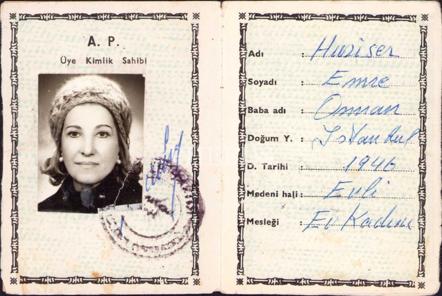 Adalet Partisi hüviyet cüzdanı, 1976, 6x8 cm