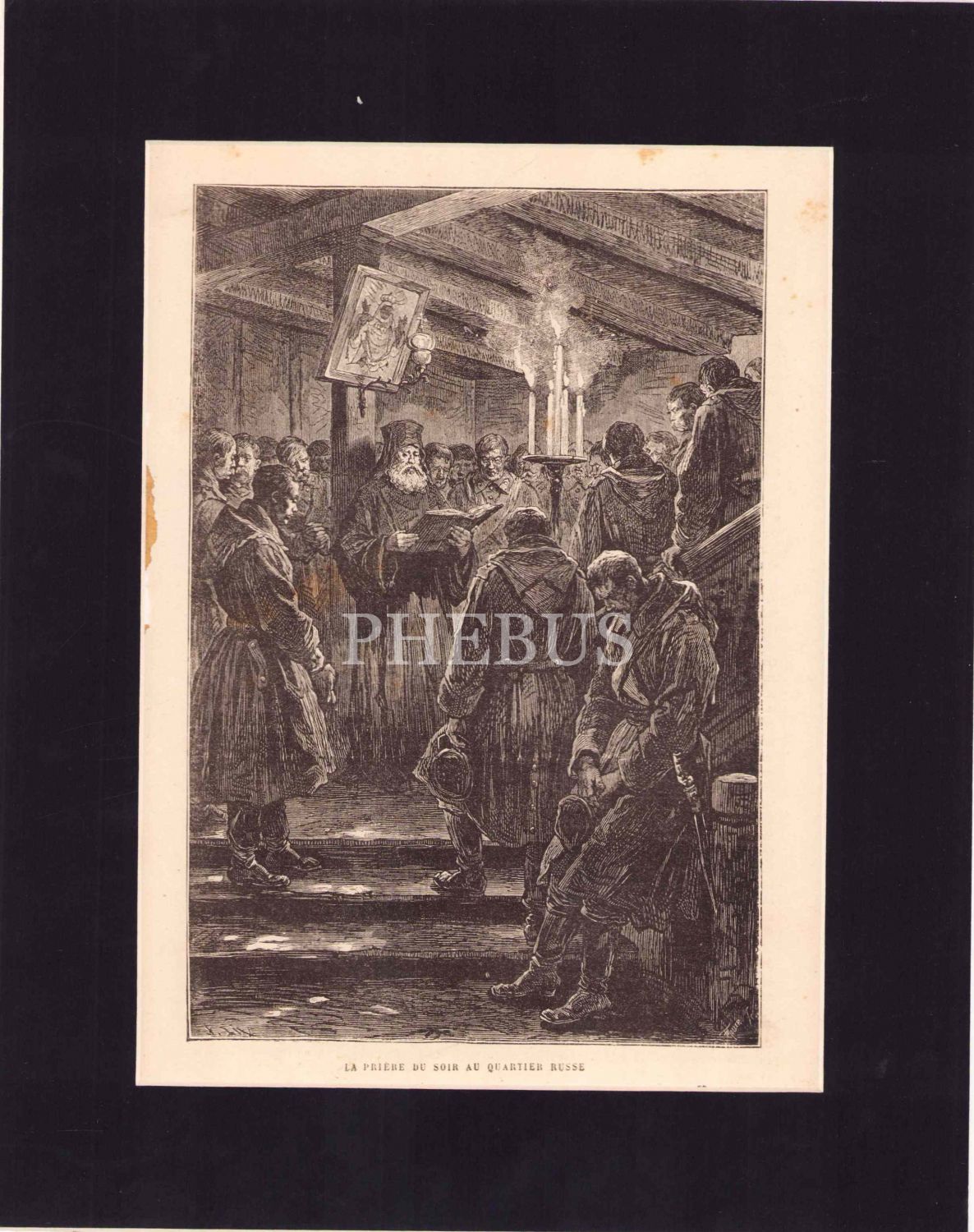 Türk Rus Savaşı gravür, 1877, Rus mahallesinde akşam namazı, 17x24 cm