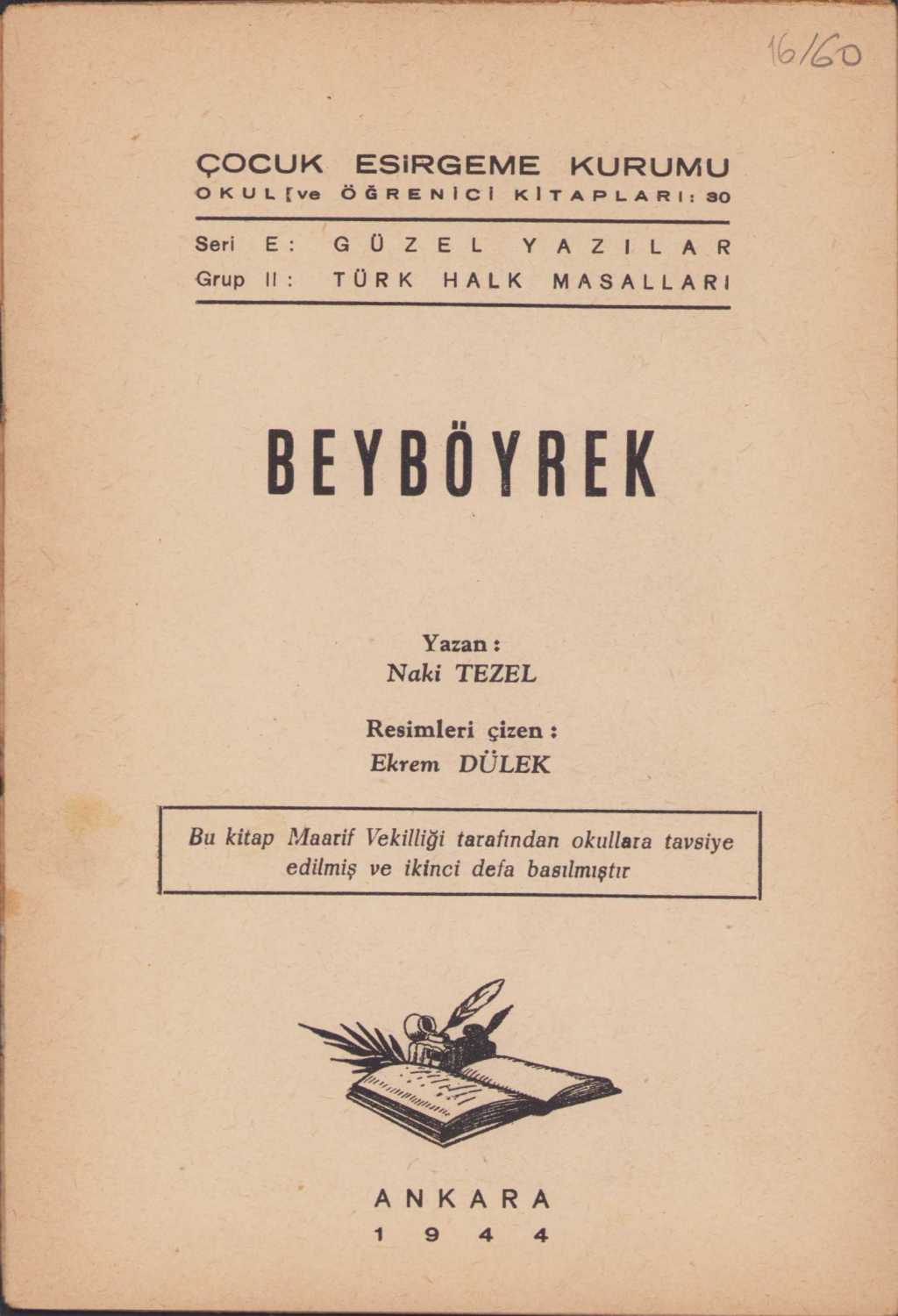 Beybörek - Çocuk Esirgeme Kurumu Okul ve Öğrenci Kitapları, Naki Tekel, çizen Ekrem Dülek, Ankara, 1944, ön kapak bir kenar yırtık, 24 sayfa, 14x20cm