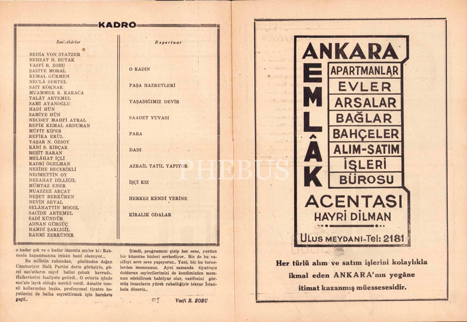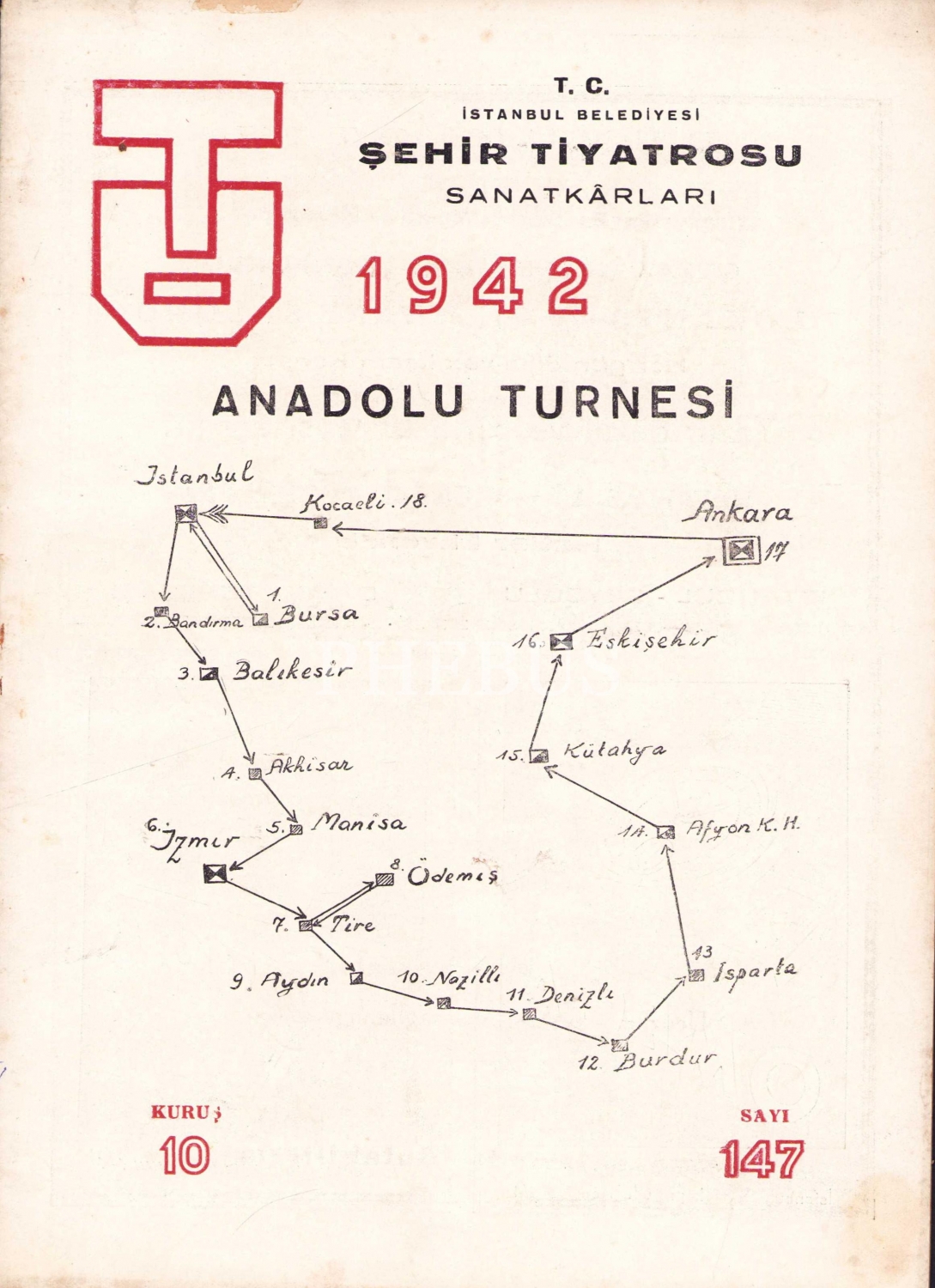 TC. İstanbul Belediyesi Şehir Tiyatrosu Sanatkarları 1942 Anadolu Turnesi, sayı 147, 24 sayfa, 20x28 cm