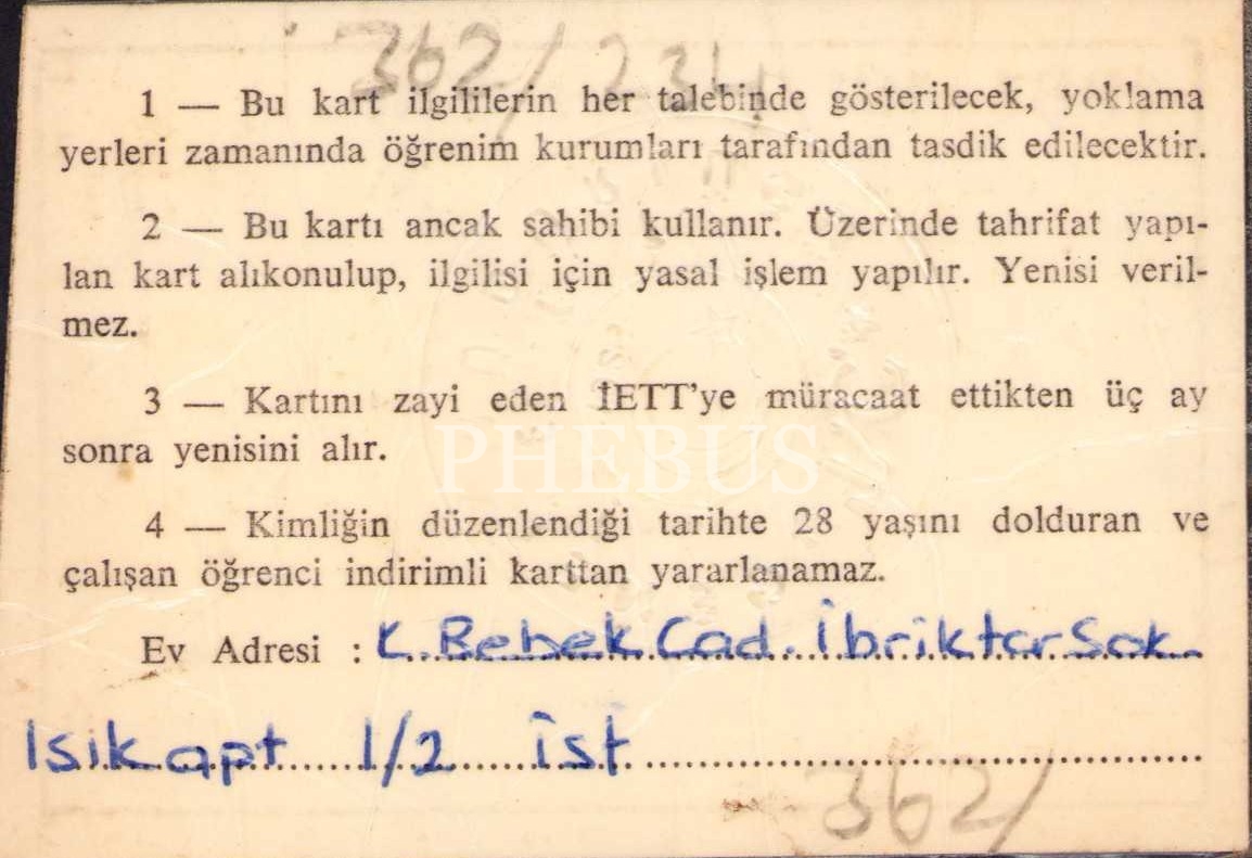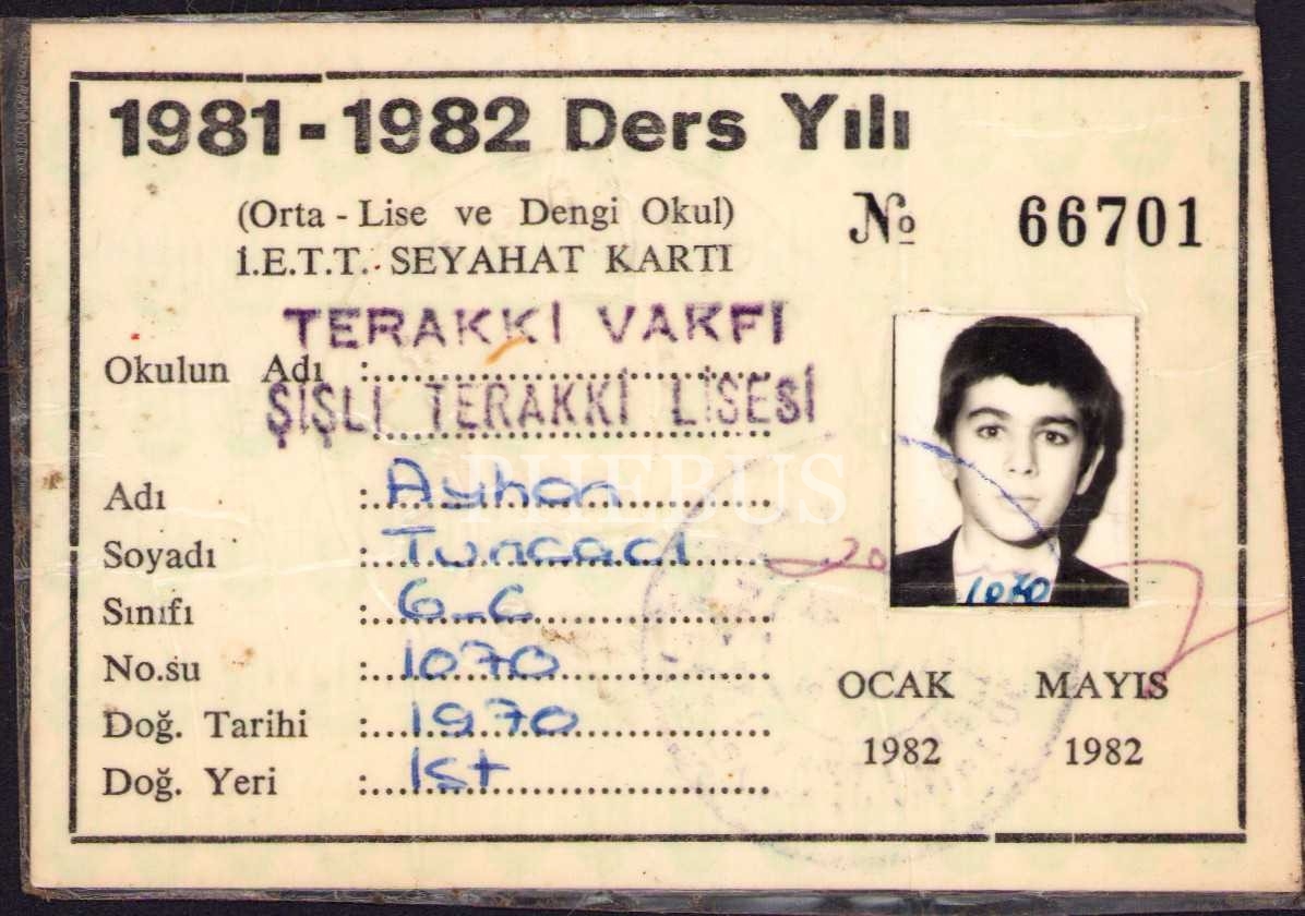 1981 - 1982 ders yılı Terakki Lisesi seyahat kartı, 10x6 cm