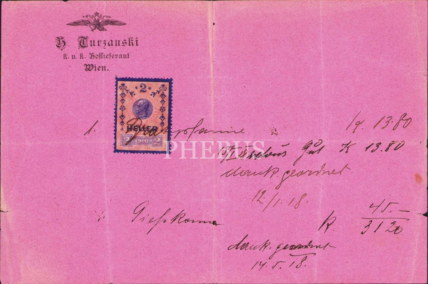 G. Turzaoski Wien antetli 1918 tarihli doküman, 19x12 cm