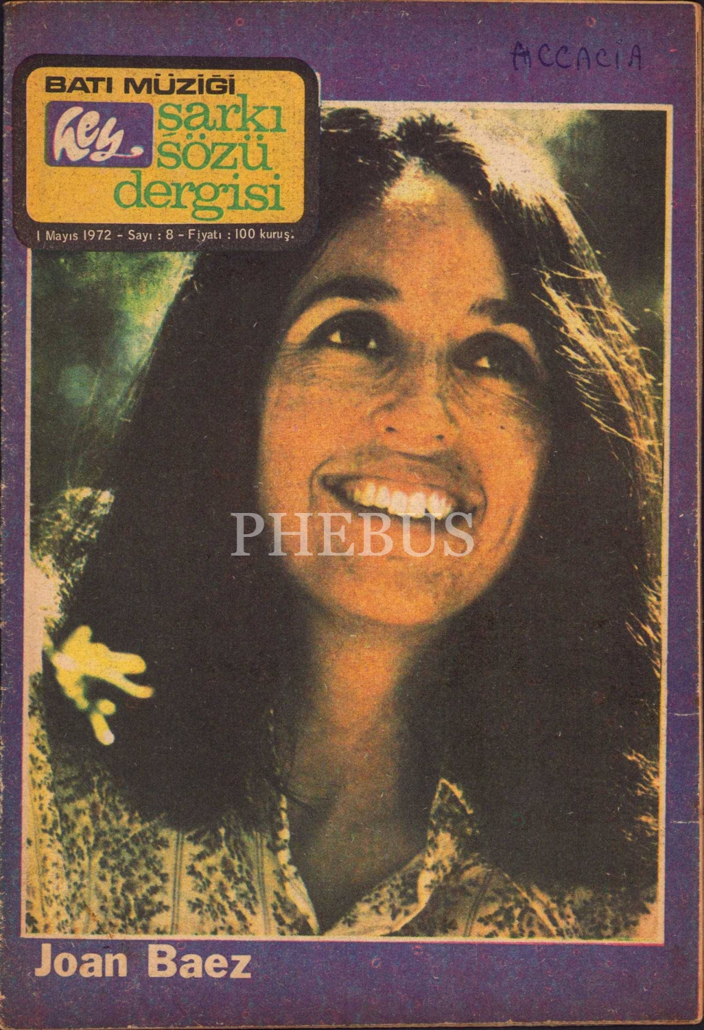 Şarkı Sözü Dergisi, 1 Mayıs 1972, kapak Joan Baez, 27 sayfa, 12x19 cm