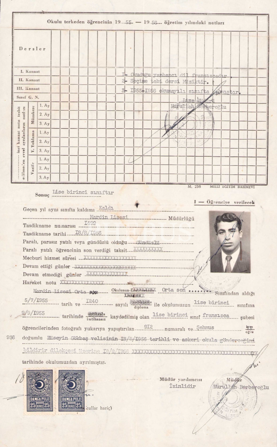 Mardin Lisesi 1956 senesi not çizelgesi, 20x32 cm