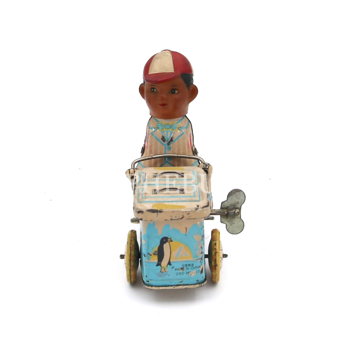 Eski Çin, kurmalı teneke oyuncak, haliyle, 10x11x4 cm