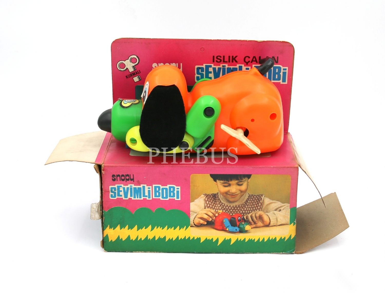 Türk malı, Tansu Oyuncakları, orijinal kutusunda,kurmalı, plastik oyuncak ''Sevimli Bobi'', haliyle 16x7x7 cm
