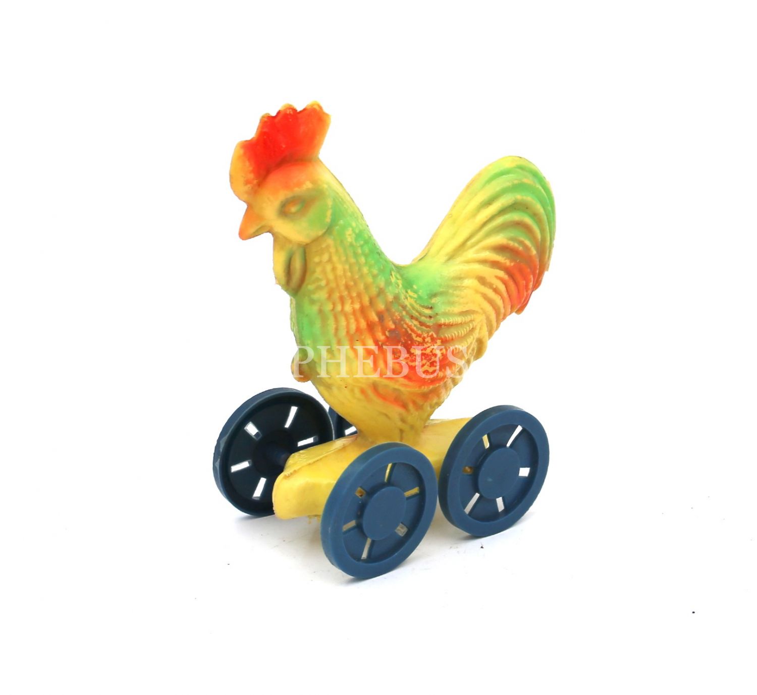 Türk malı, şişme plastik, tekerlekli horoz, 13x15x5 cm
