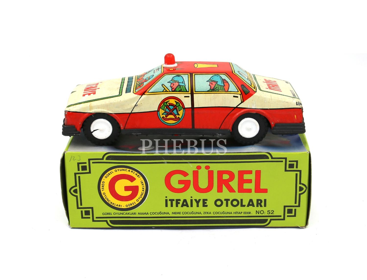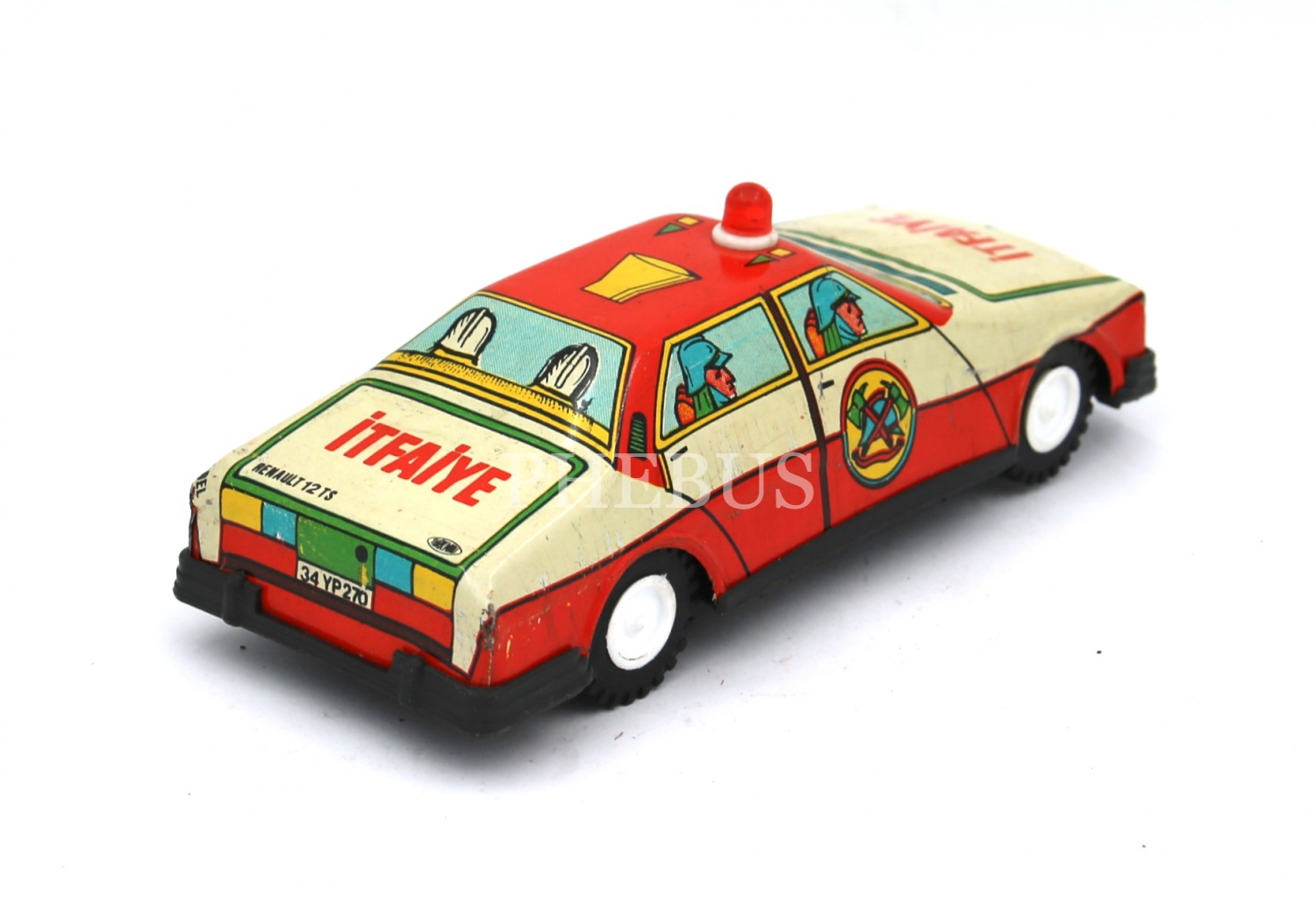 Türk malı, Gürel marka, kutusunda, kırmızı tepe lambalı, itfaiye arabası, 8x18x5 cm
