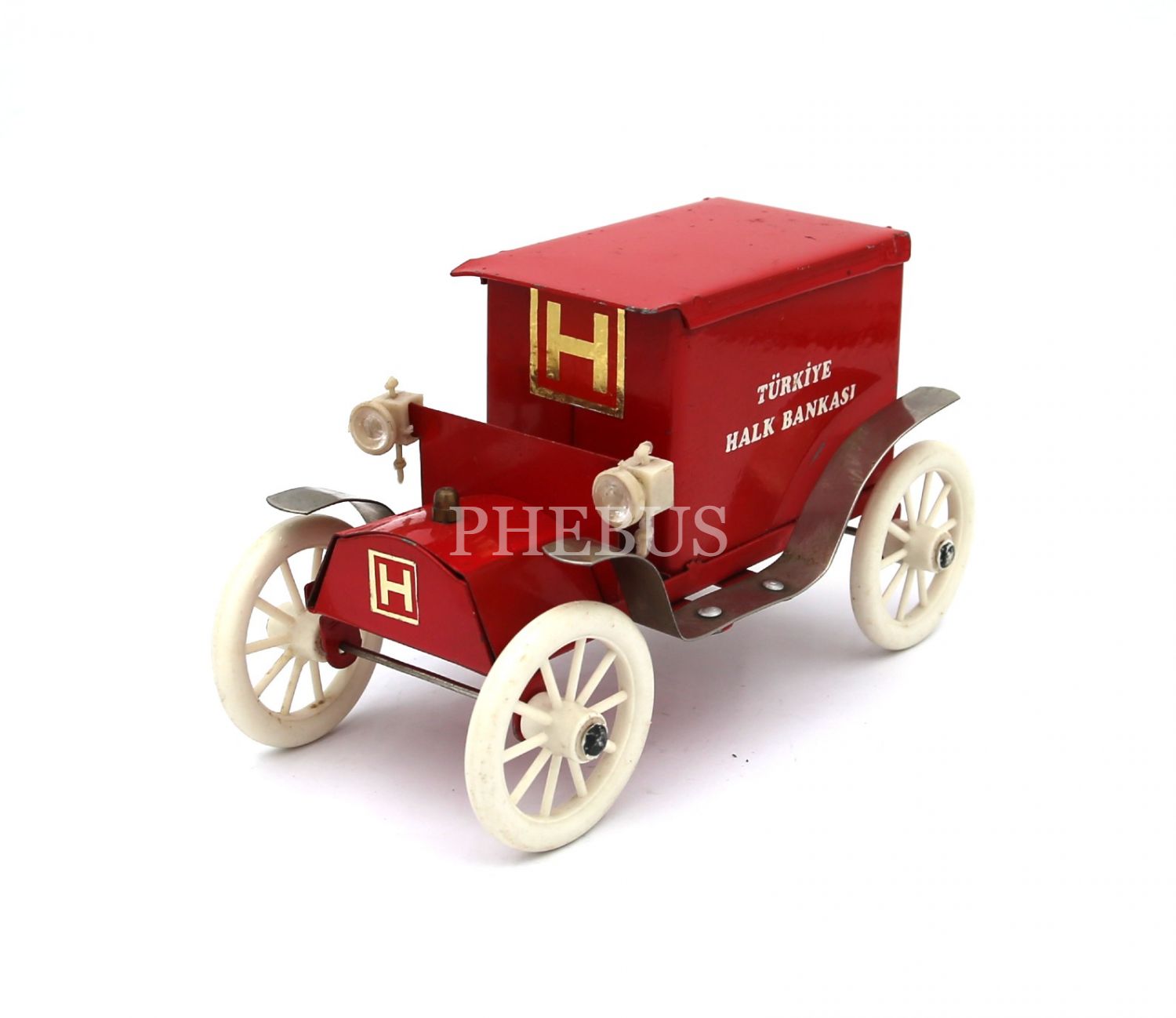 Türk Halk Bankası, otomobil formunda, metal kumbara, 9x18x11 cm