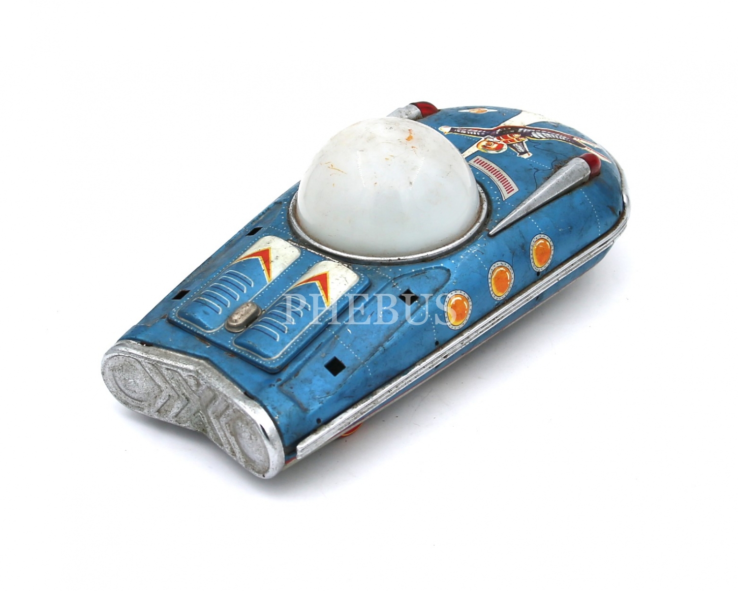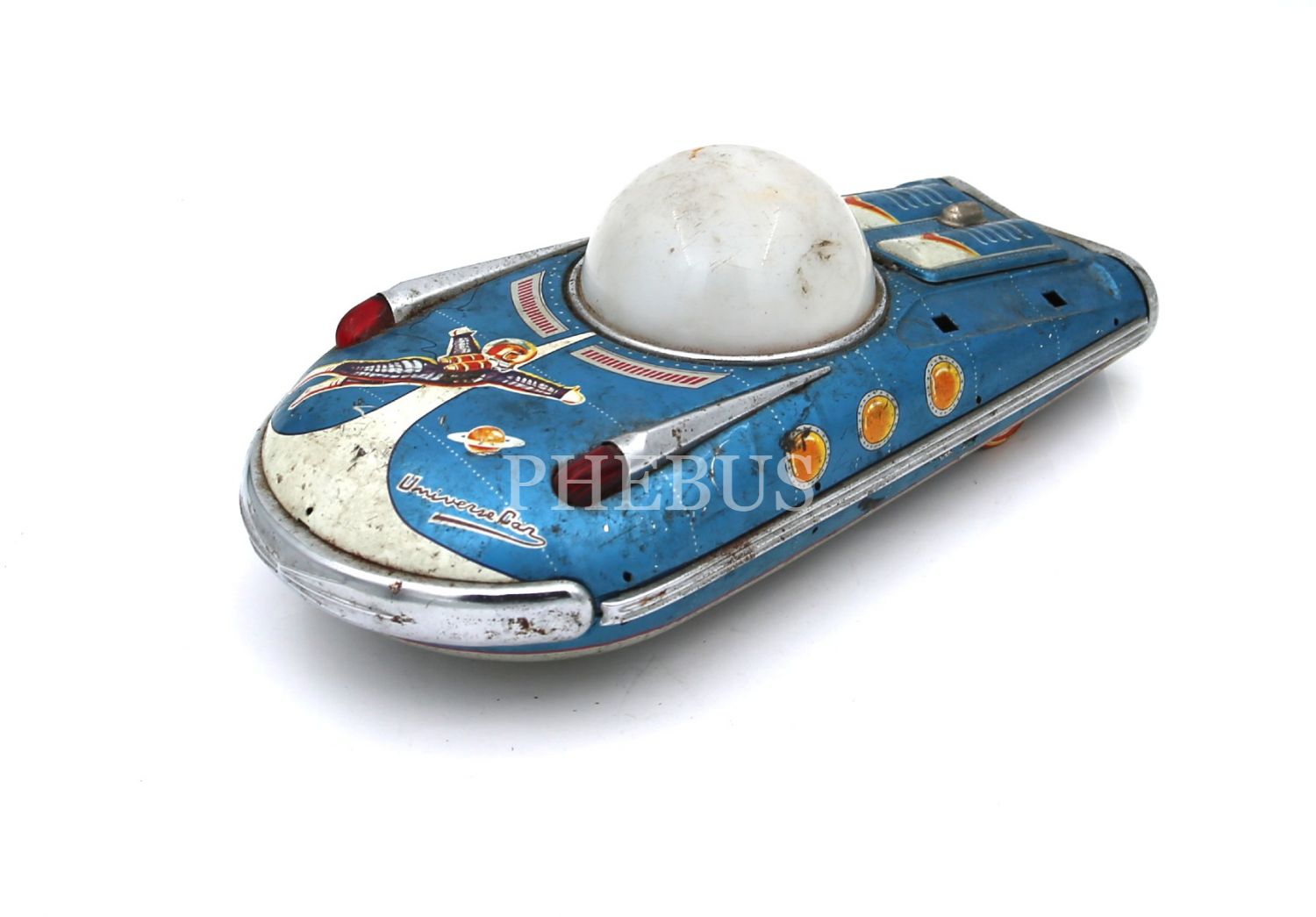 Japon malı, pilli (denenmedi), teneke oyuncak uzay gemisi, 13x25x8 cm