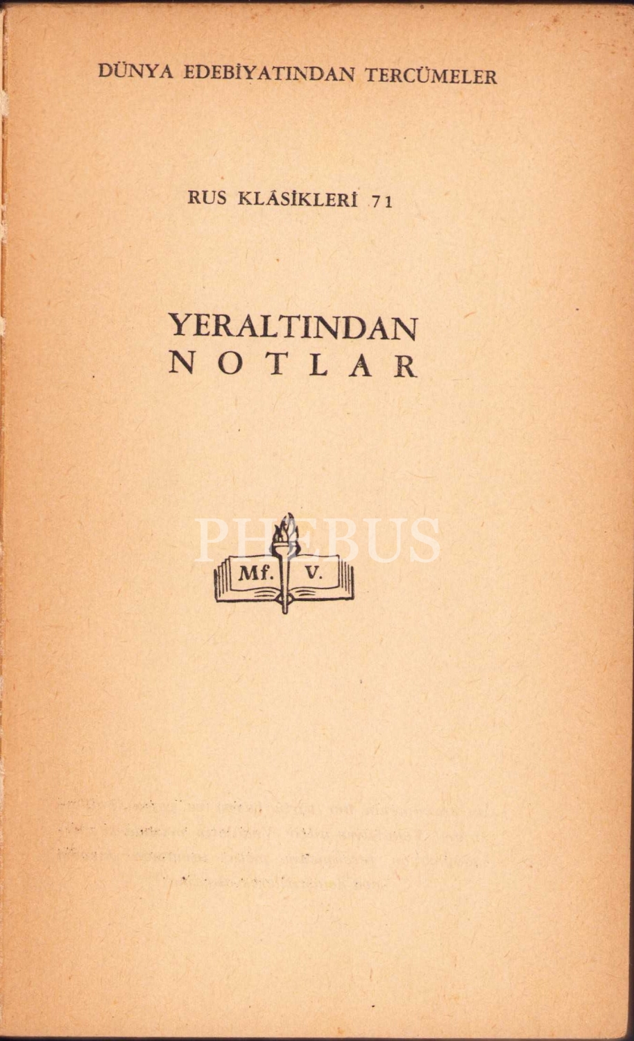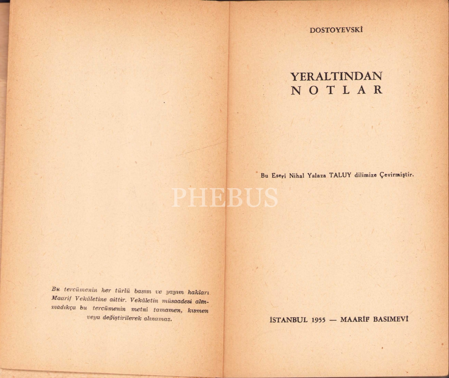 Yeraltından Notlar -Hikaye-, Dostoyevski, Çeviren Nihal Yalaza Taluy, 1955, 157 sayfa