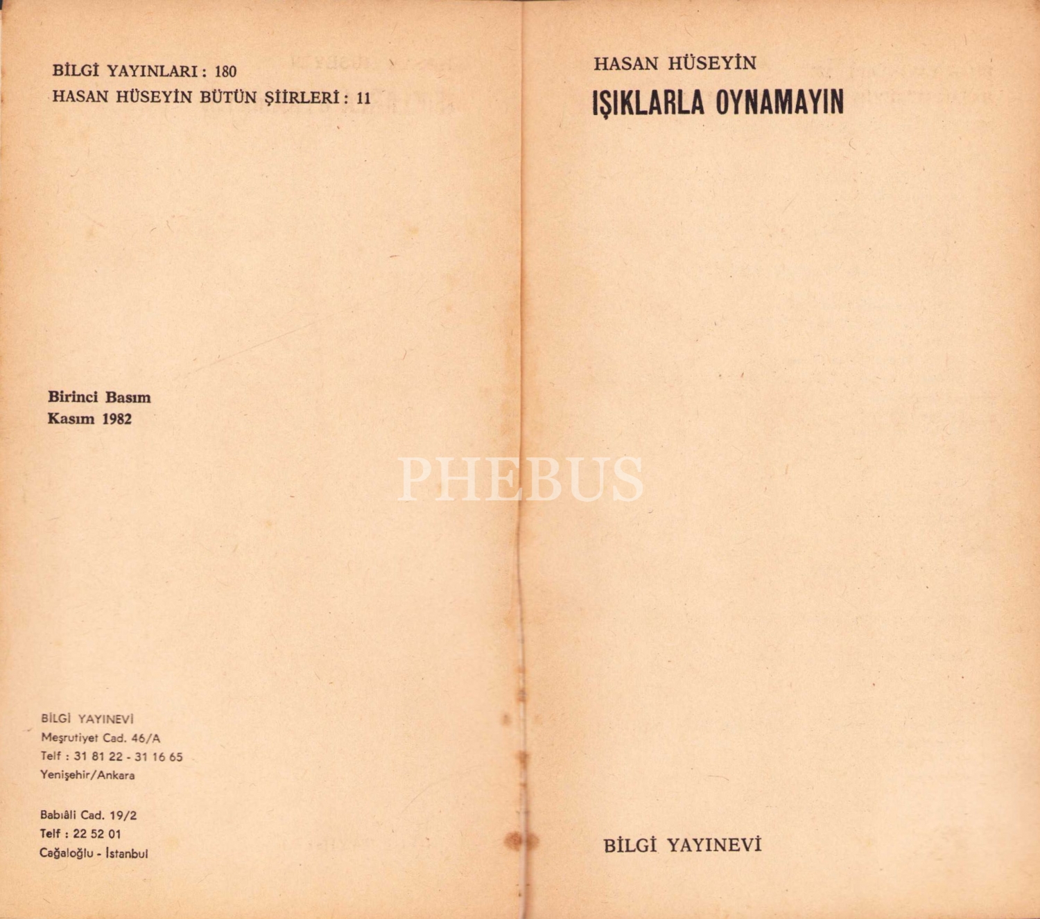 Işıklarla Oynamayın -Şiir-, Hasan Hüseyin [Korkmazgil], İlk Baskı 1982 , 175 sayfa