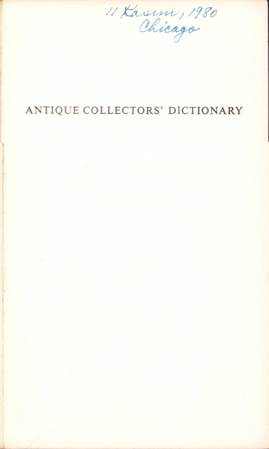İngilizce, Antique Collector's Dictionary, Donald Cowie and Keith Henshaw, 1971, 208 sayfa