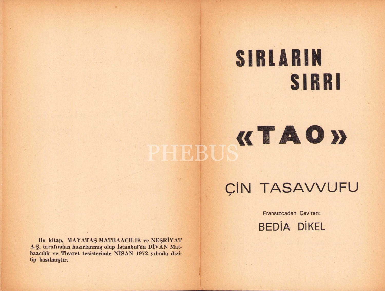 Sırların Sırrı "Tad" Çin Tasavvufu, Çeviren, Bedia Dikel, 1972, 109 sayfa