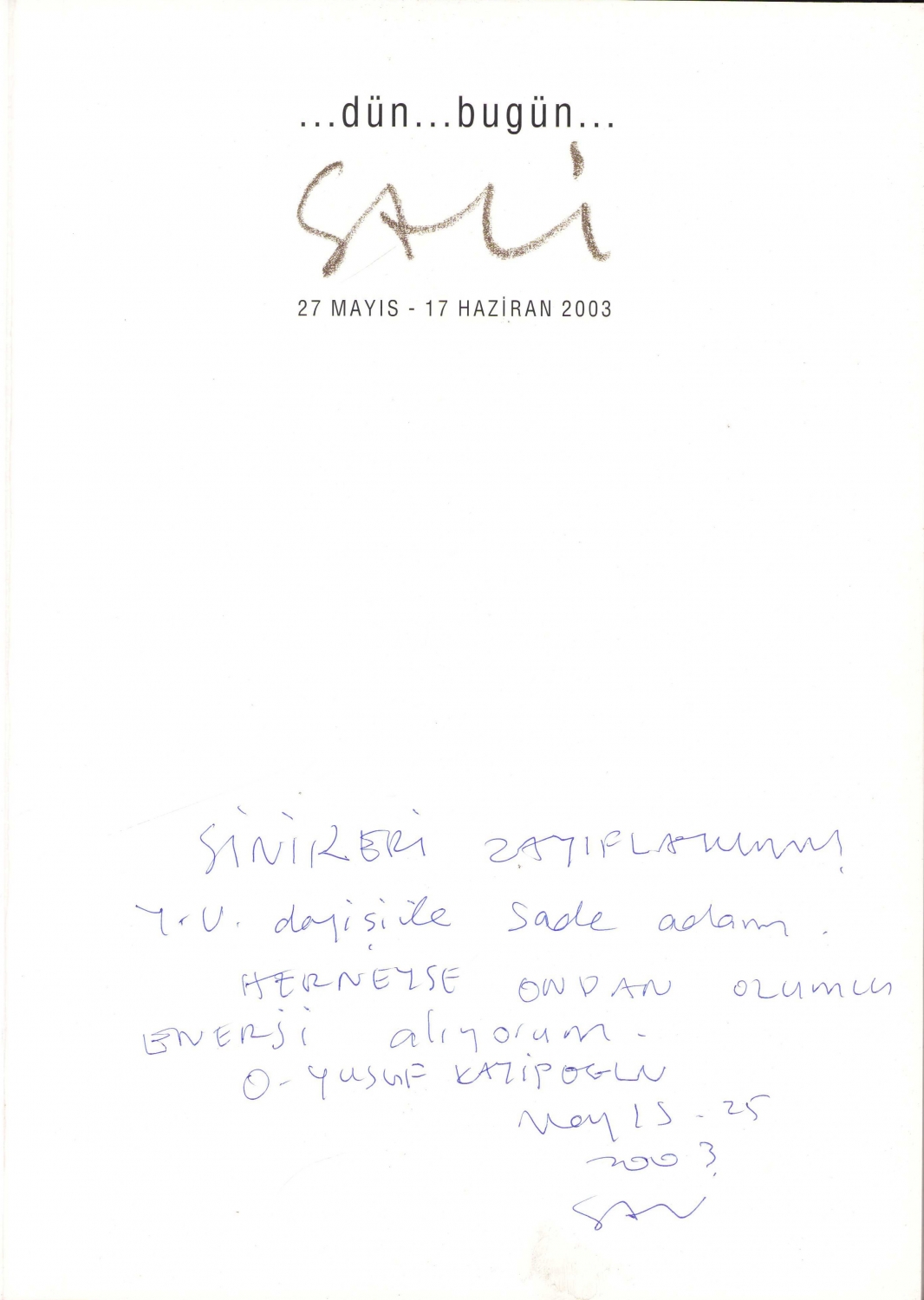 Sergi Kataloğu, ... Dün ... Bugün... [27 Mayıs - 17 Haziran 2003], Sali Turan'dan ithaflı ve imzalı, İstanbul 2003, 24x33 cm
