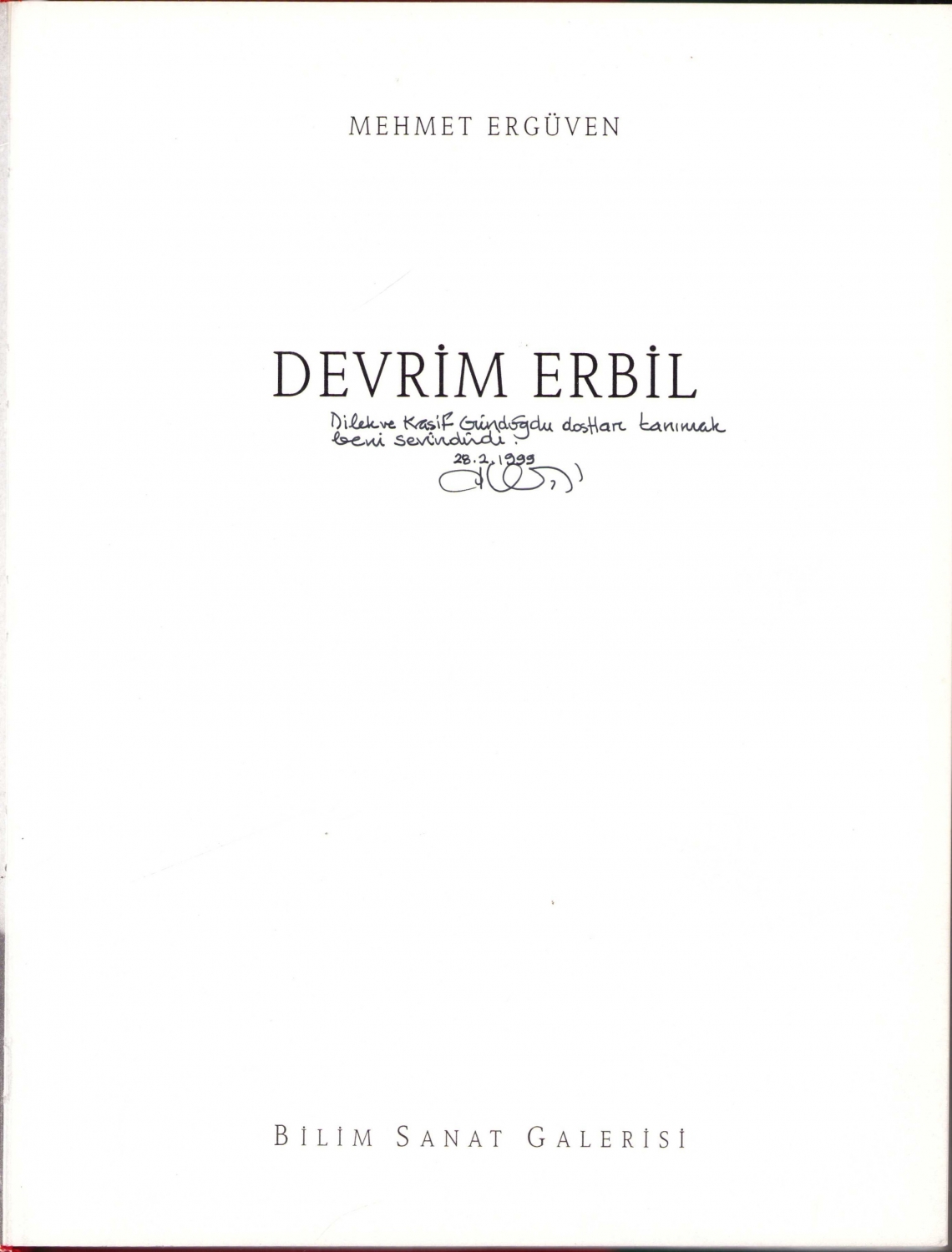 Sergi Kataloğu, Devrim Erbil'den ithaflı ve imzalı, hazırlayan Mehmet Ergüven, İstanbul 1995, 23x31 cm
