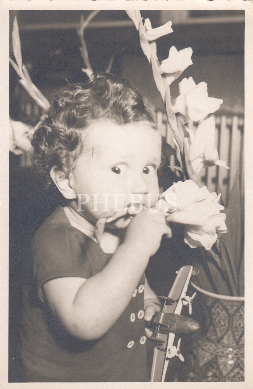 Oyuncak uçağıyla kız çocuğu, 11x17 cm