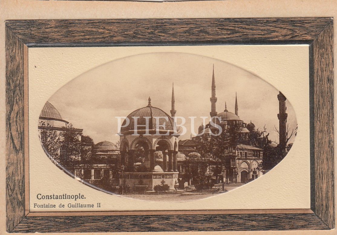 Sultanahmed Camii ve Alman çeşmesi görselli lake kartpostal, Constantinople, Fontaine de Guillame II, 14x9 cm